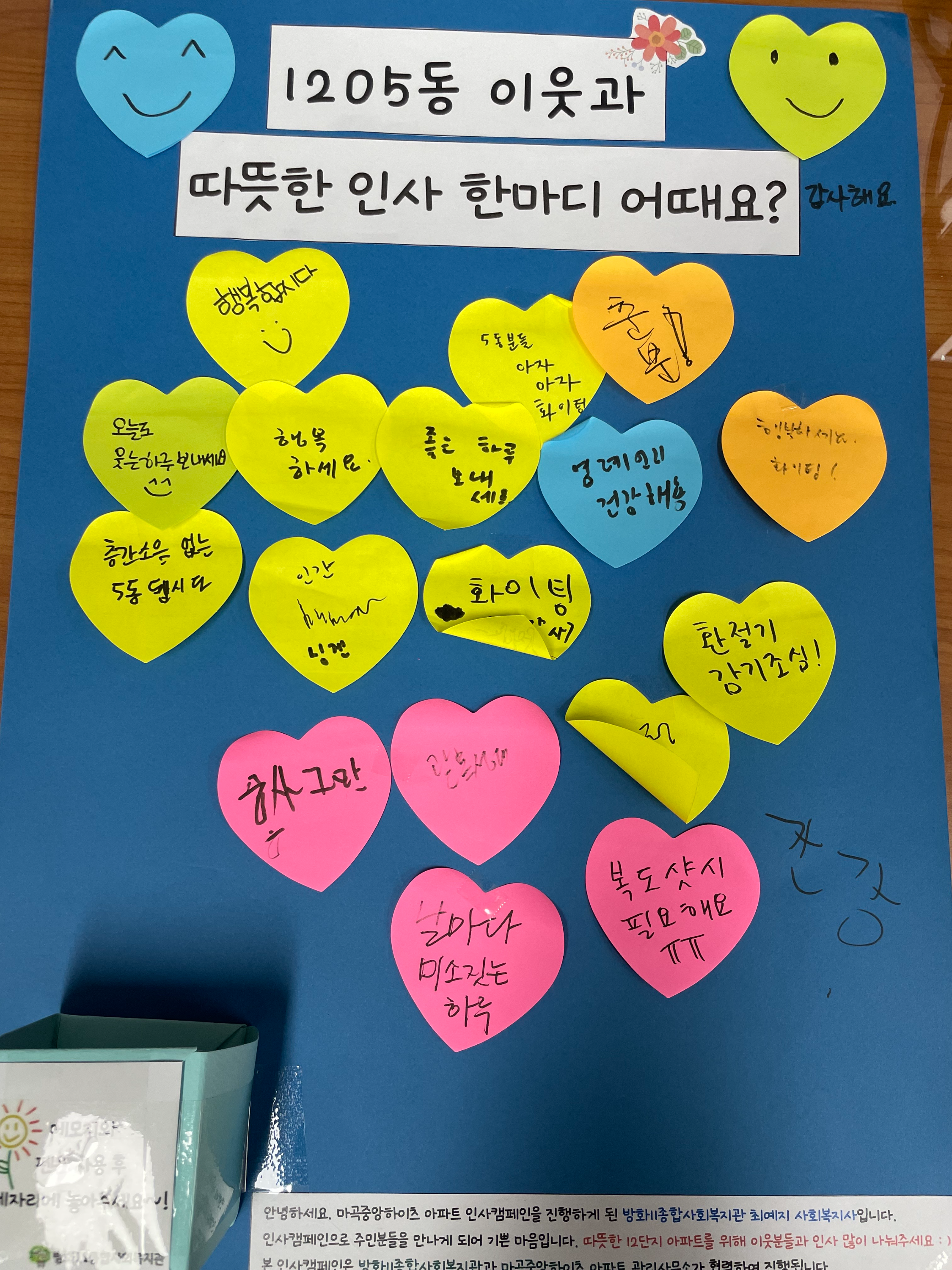 이웃을 생각하는 마음을 담아 풍성하게 3월 인사캠페인을 이루어 주신 마곡중앙하이츠아파트 주민분들께 고맙습니다.