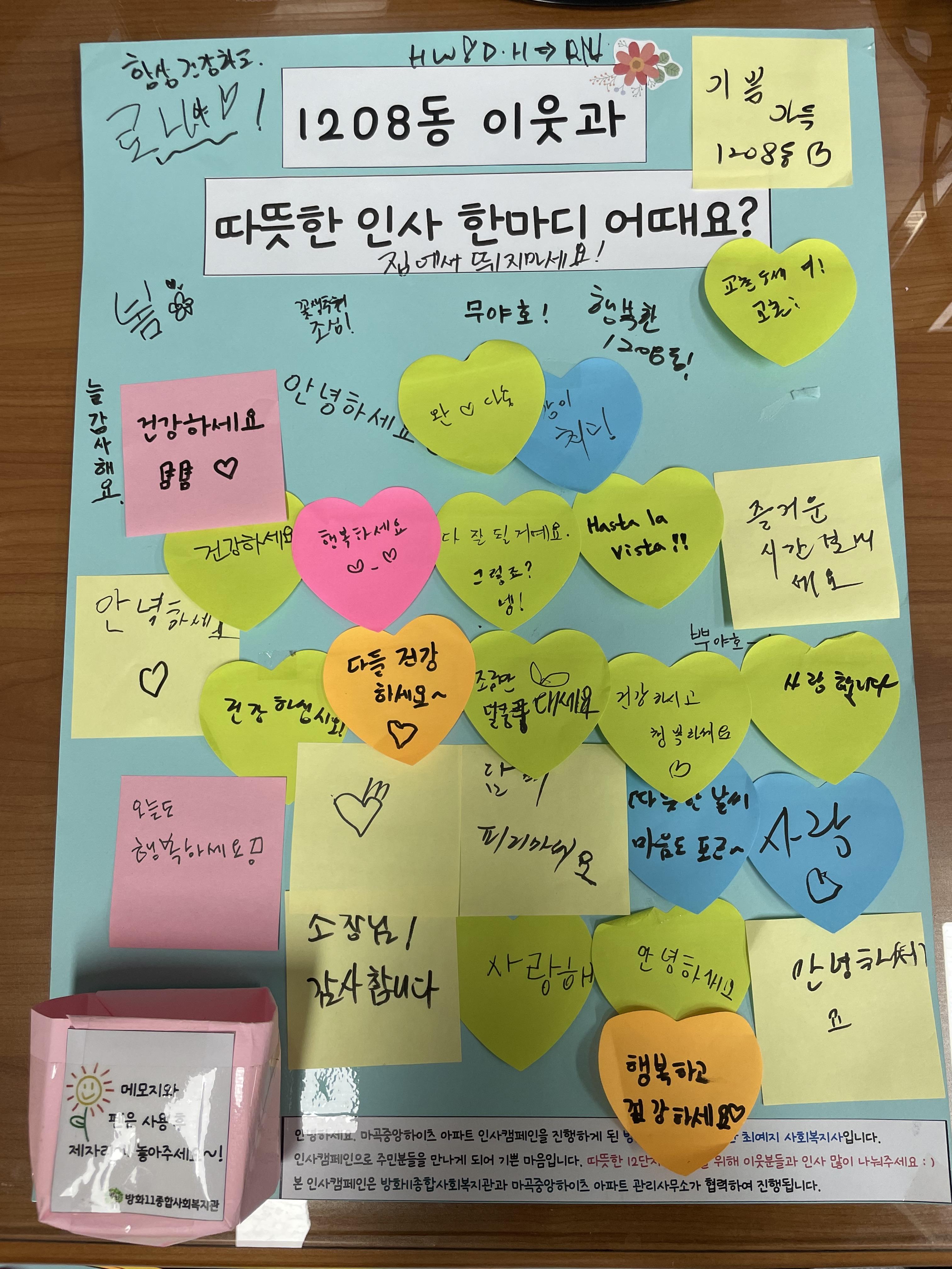 이번 인사캠페인을 통해 이웃들이 서로 인사하고 싶어 하는구나 느끼셨다고 합니다.