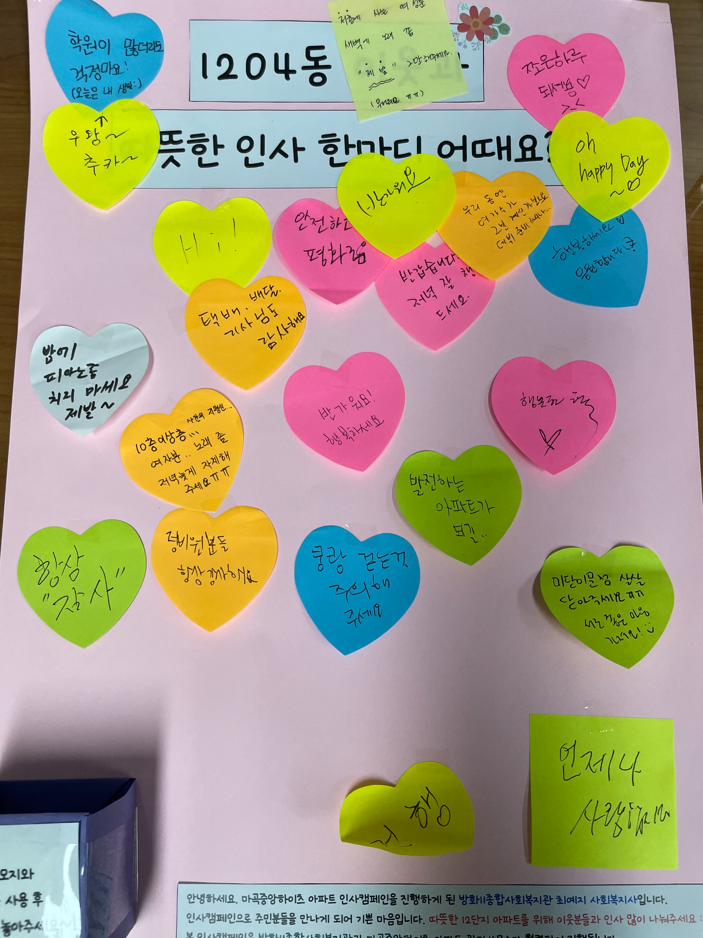 이웃을 생각하는 마음을 담아 풍성하게 3월 인사캠페인을 이루어 주신 마곡중앙하이츠아파트 주민분들께 고맙습니다.