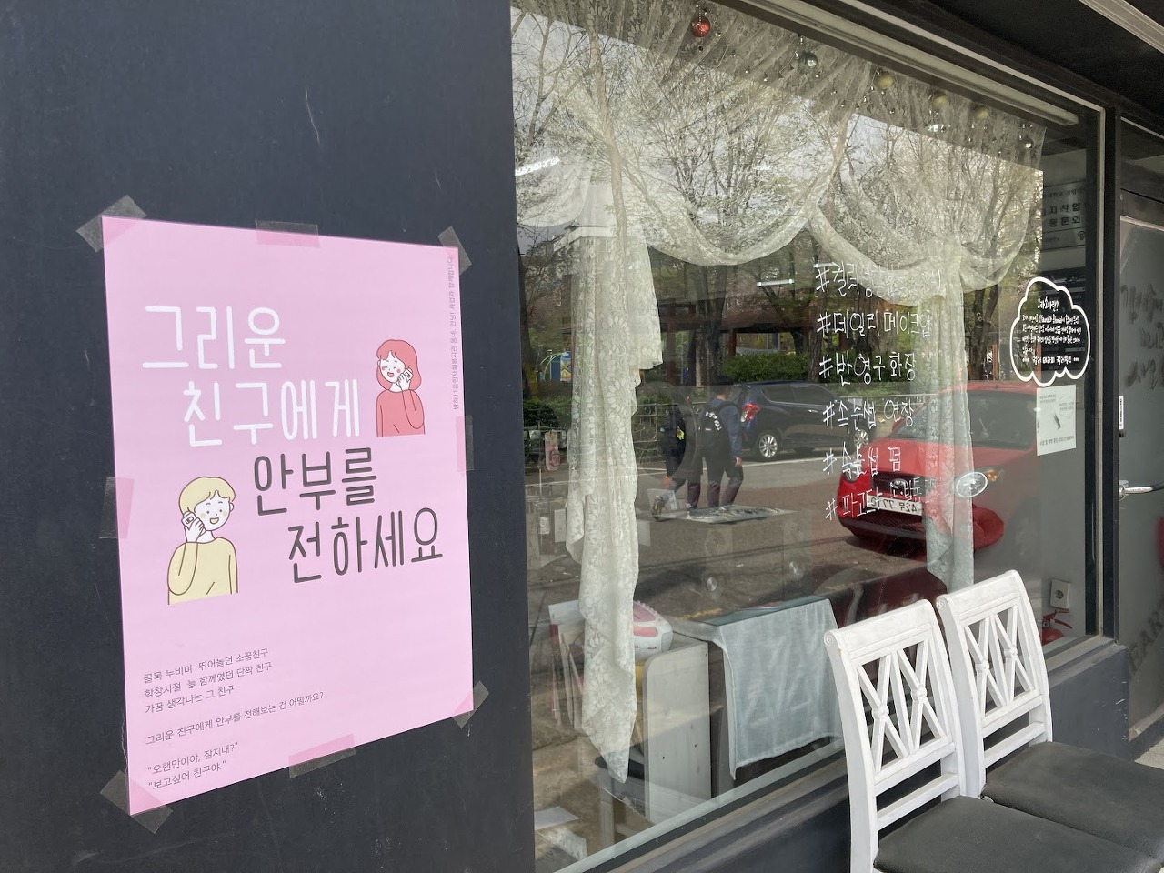 4월 상가인사캠페인 포스터 주제는 ‘그리운 친구에게 안부를 전하세요’입니다.