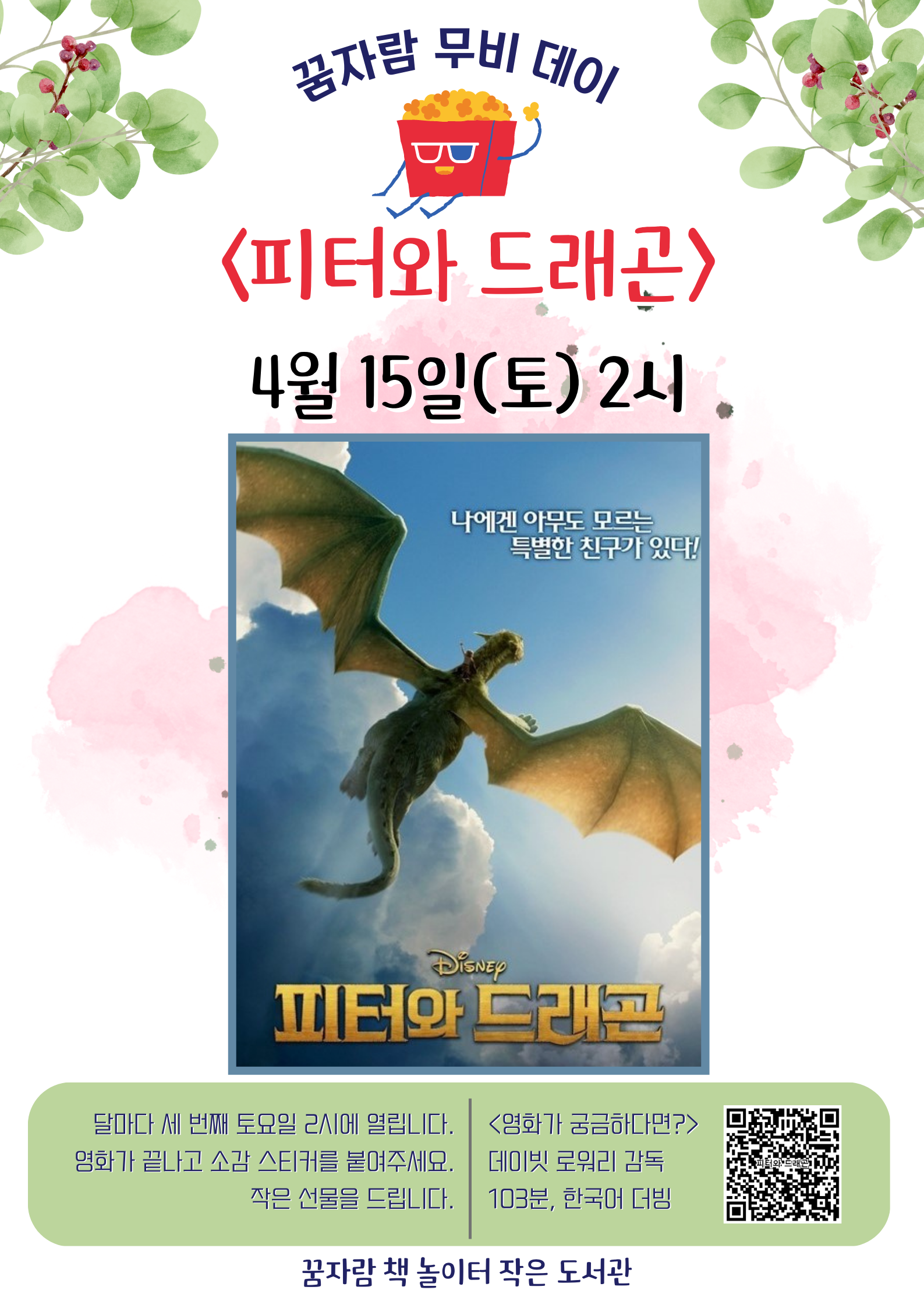 4월에는 영화 <피터와 드래곤>을 상영해요.