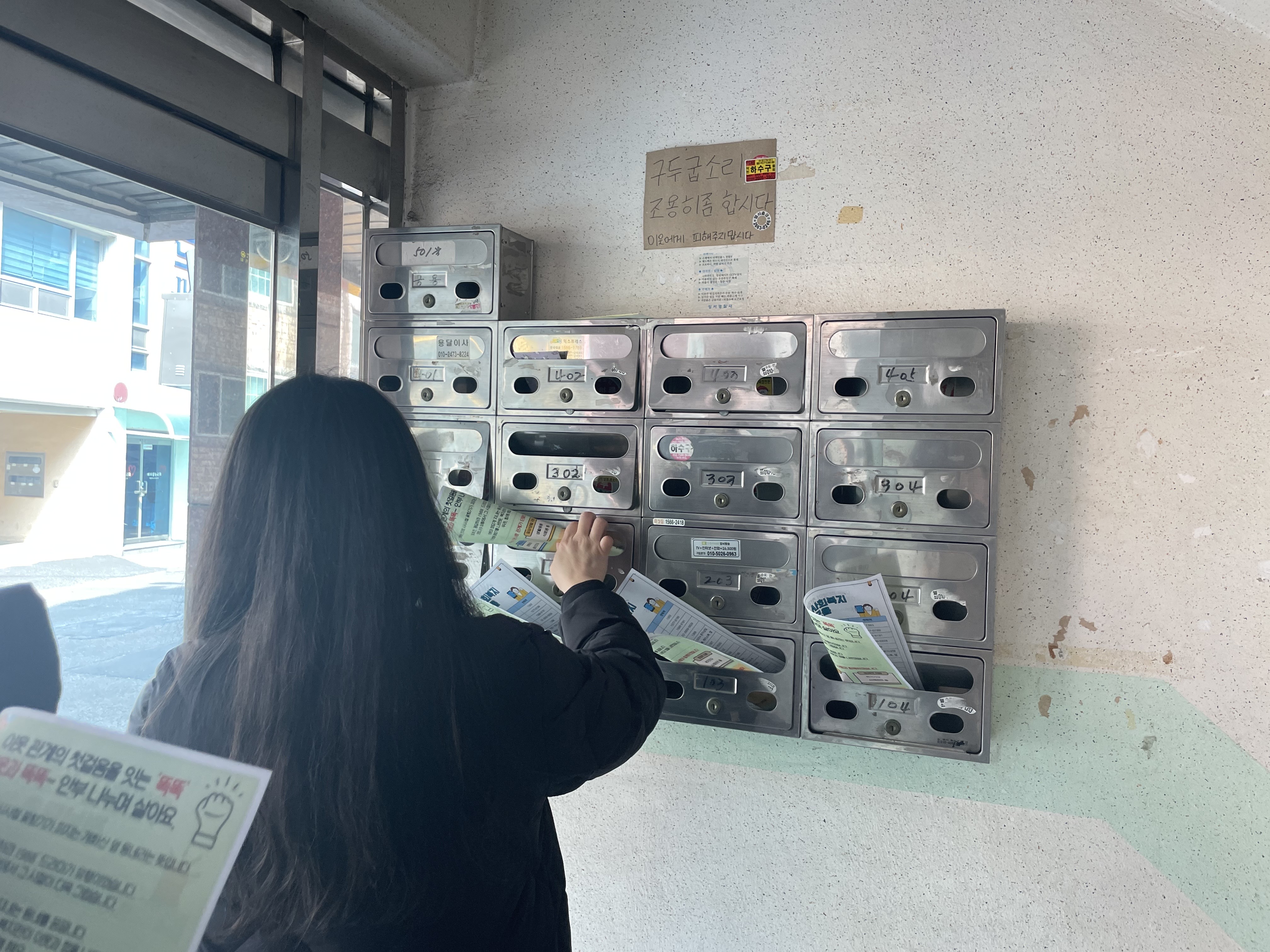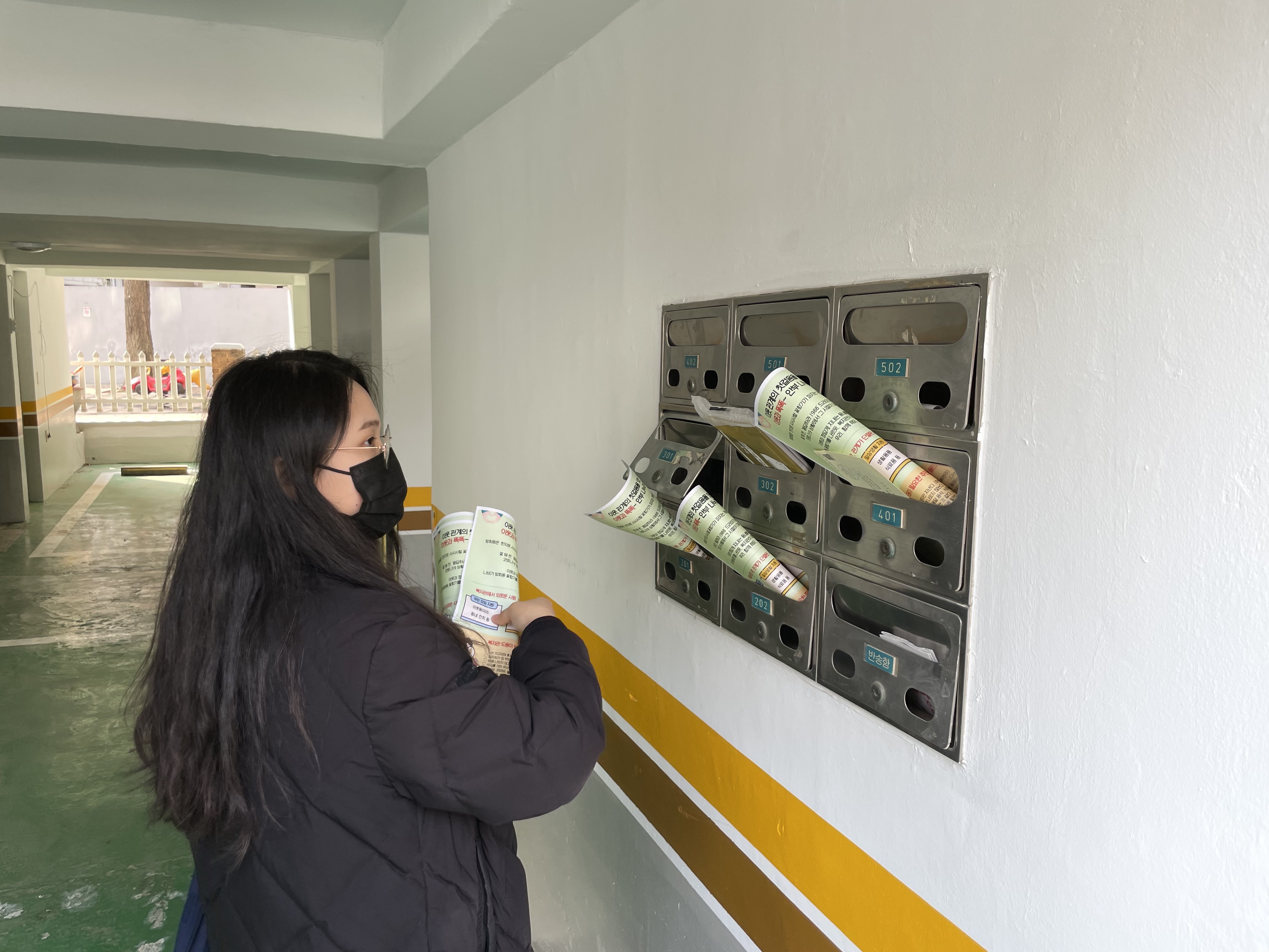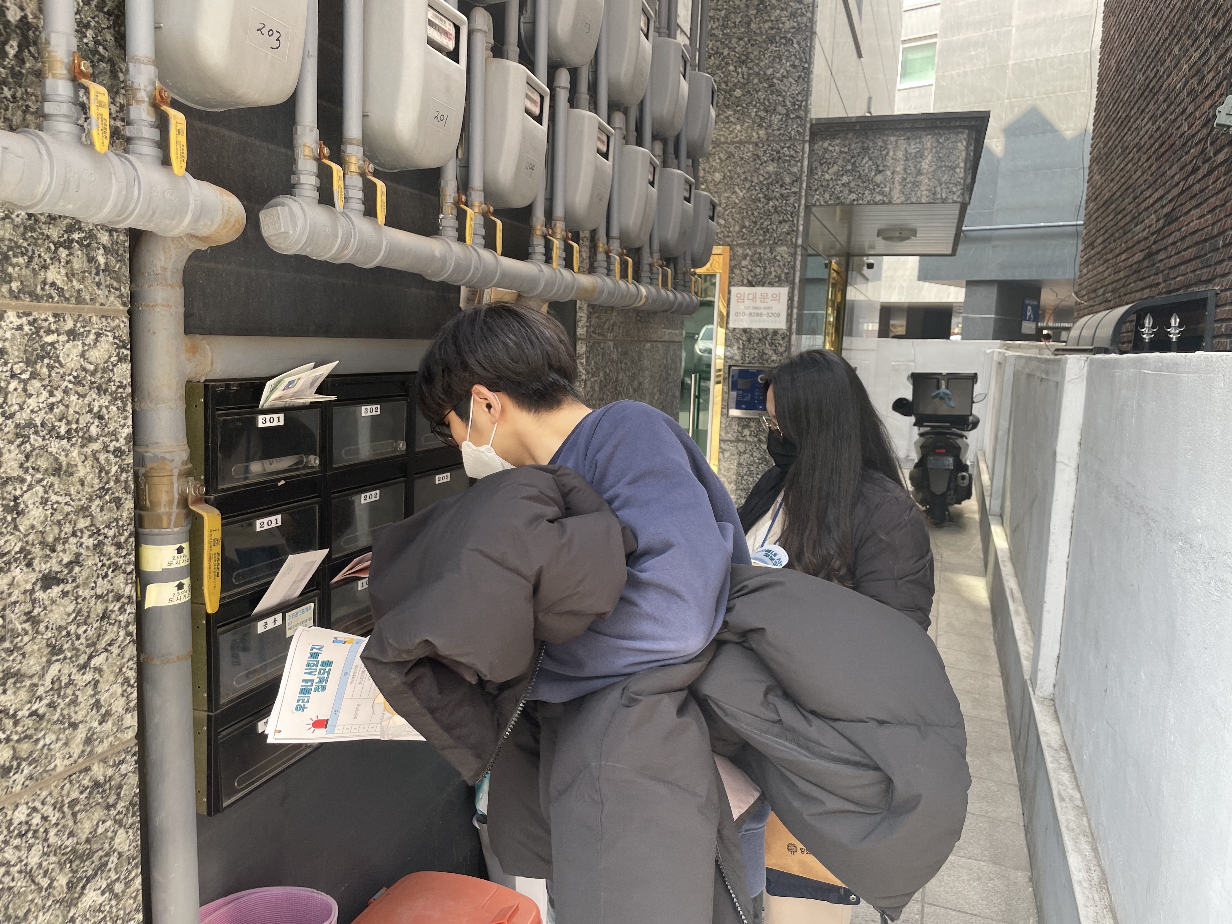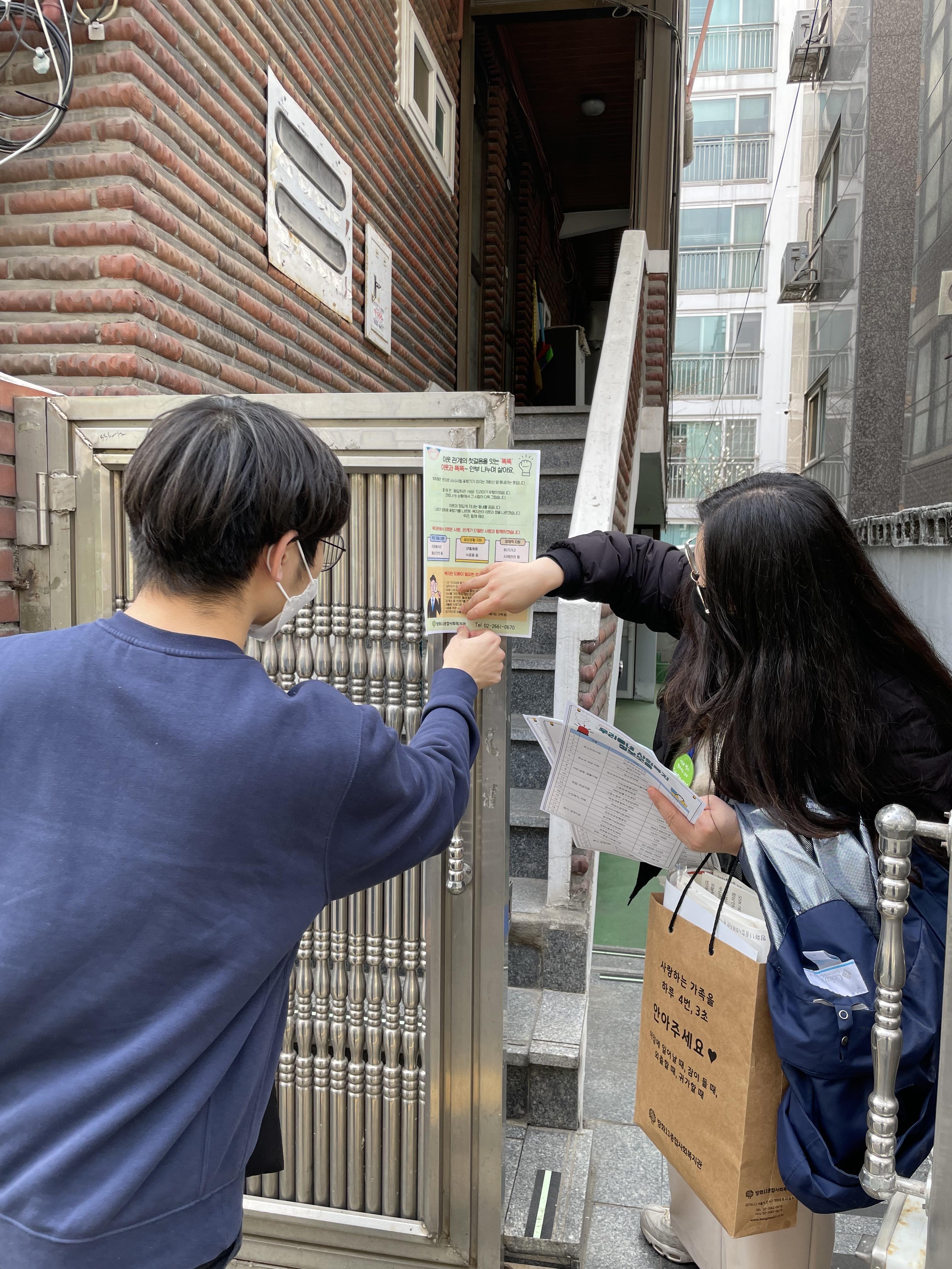 곁에있기1팀에서는 담당 지역의 주택, 빌라를 중심으로 똑똑 사업 홍보지를 부착했습니다.