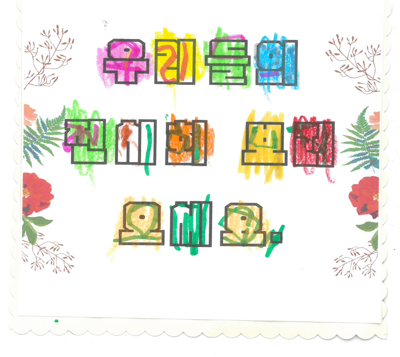 “어르신~ 아이들이 만든 꽃 작품 보시고 응원 인사말 남겨주실 수 있나요?”