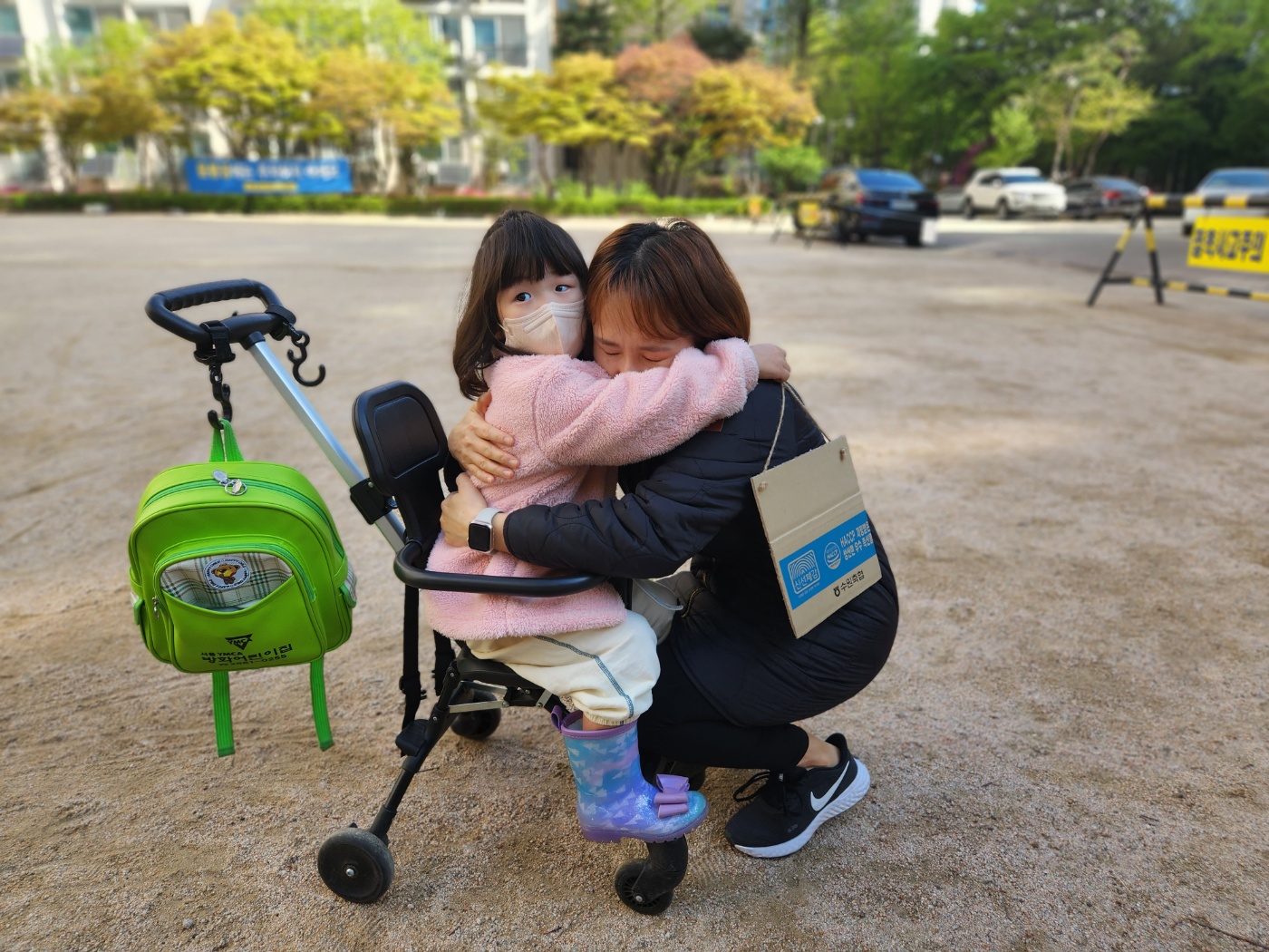 어린이집 하원 시간에 맞춰 후기 설문지를 들고 어린이집으로 내려갔습니다. 아이들이 하원하는 시간은 정해져 있기 보다 학부모님들이 데리러 오는 시간에 따라 달라집니다. 아이와 집으로 돌아가는 학부모님께 후기 작성을 해주실 수 있는지 여쭸습니다.