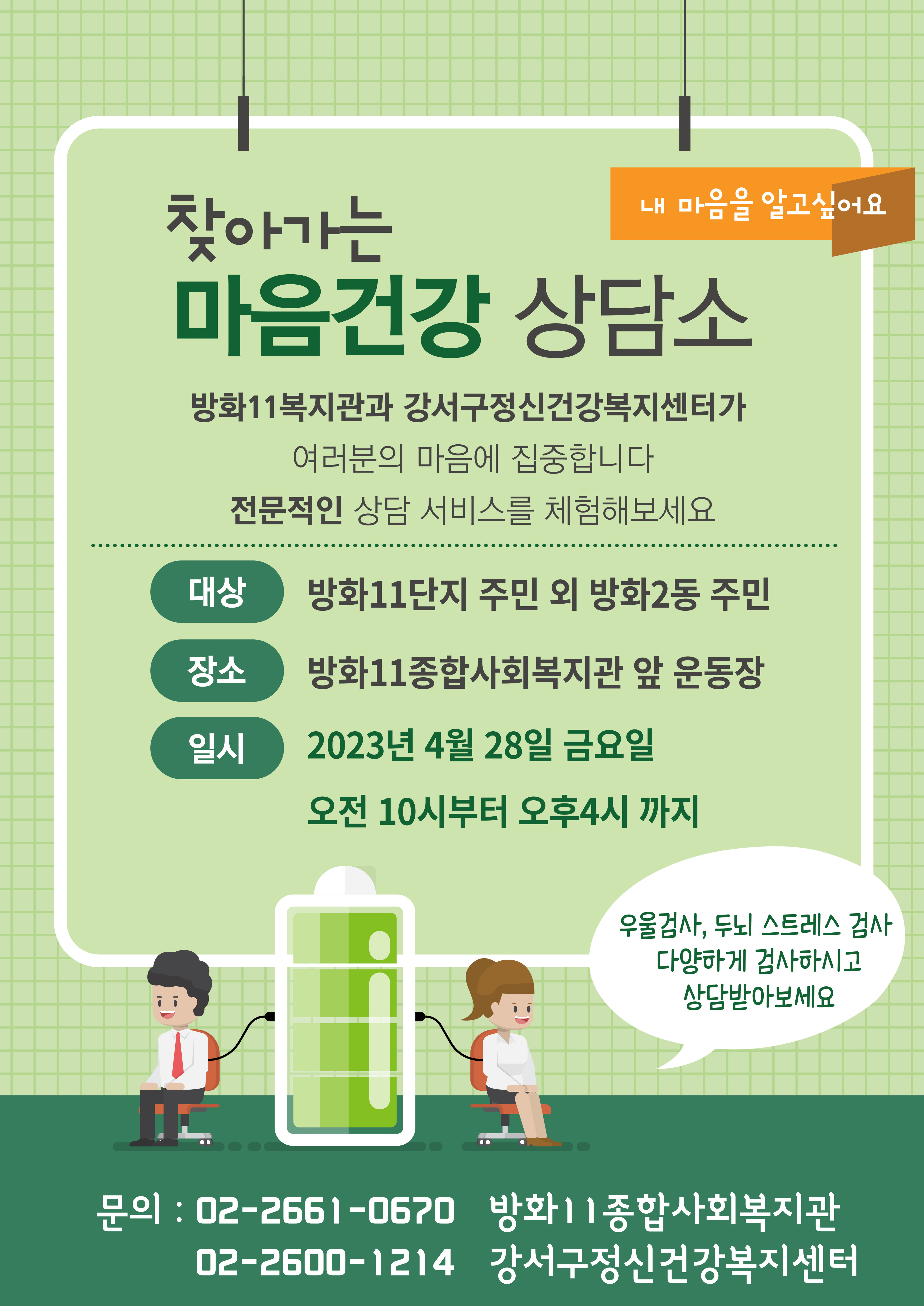 방화11복지관에서는 주민 여러분들의 마음건강을 살피고 돕기 위해,