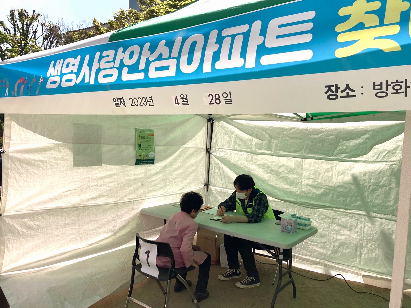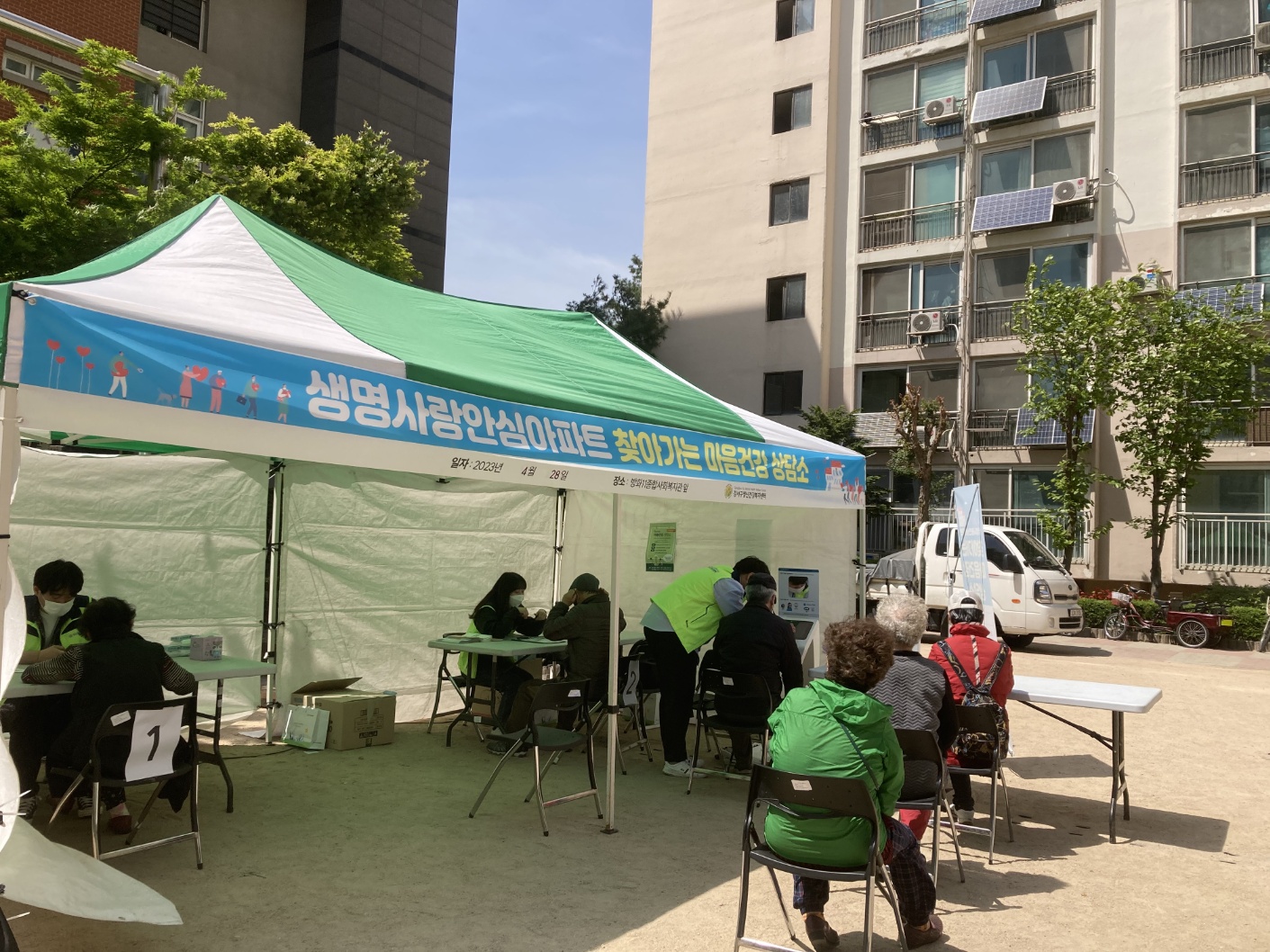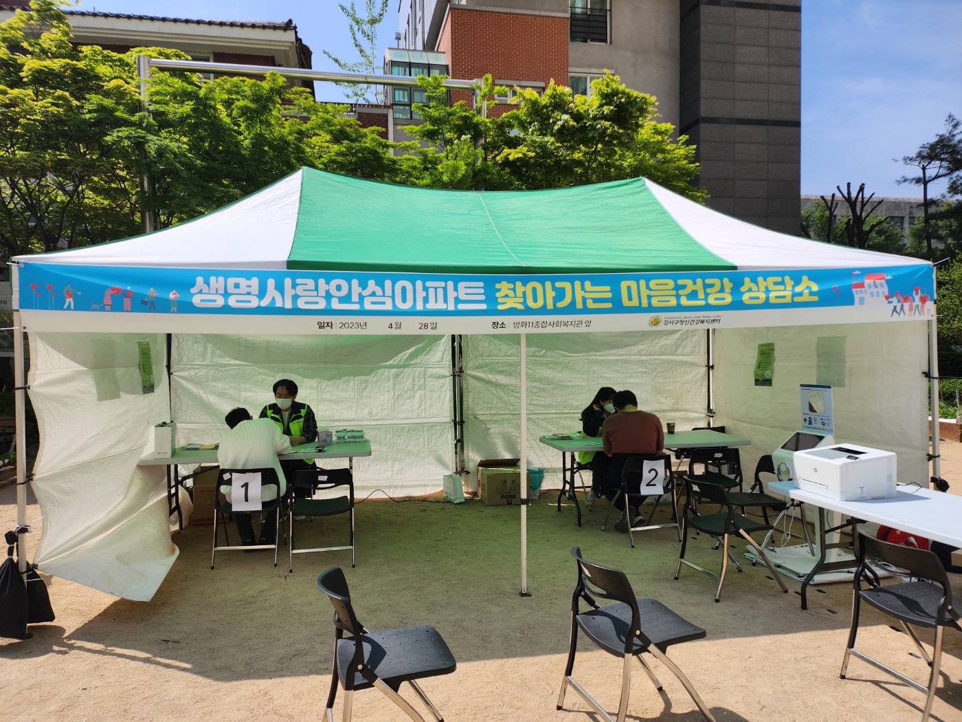 '찾아가는 마음건강 상담소' 부스를 운영하기 전에 방화11단지아파트