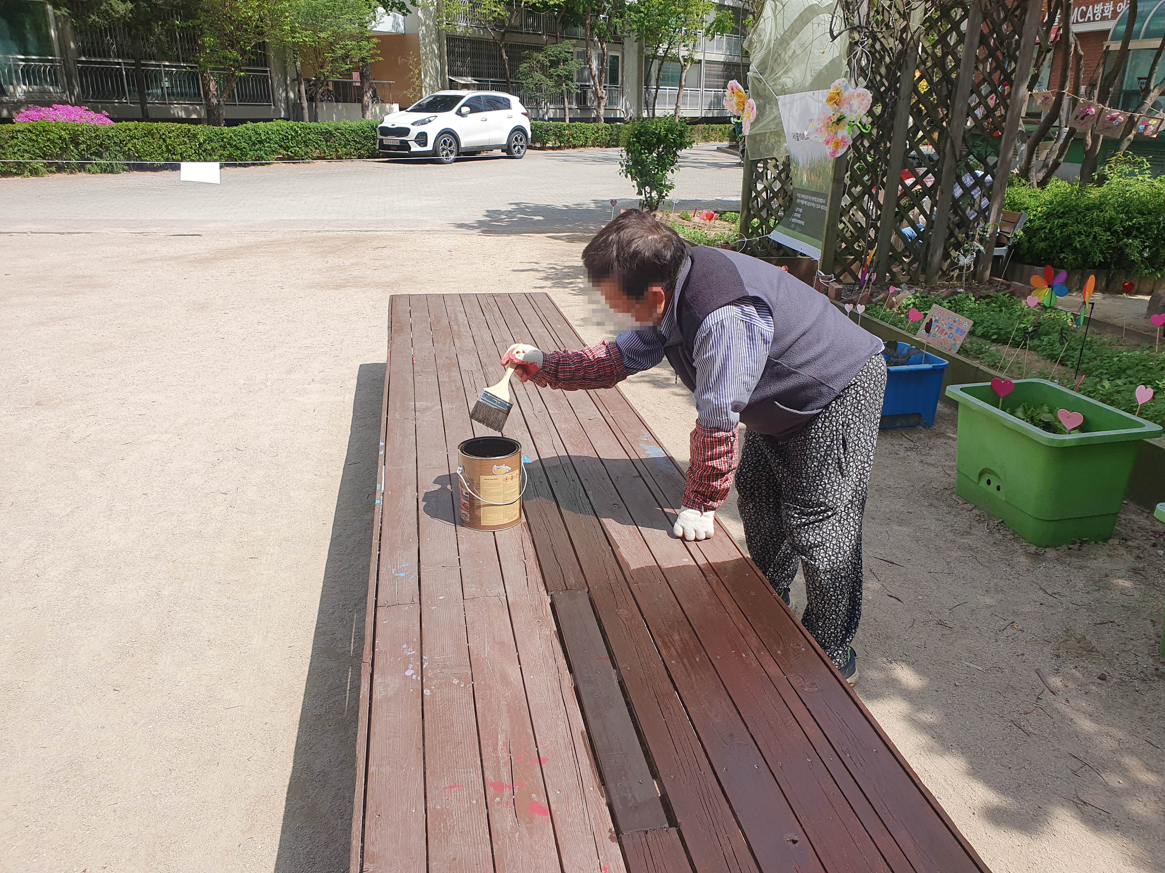 어느 날에는 복지관 앞 평상에 구멍이 생겨 위험하다며