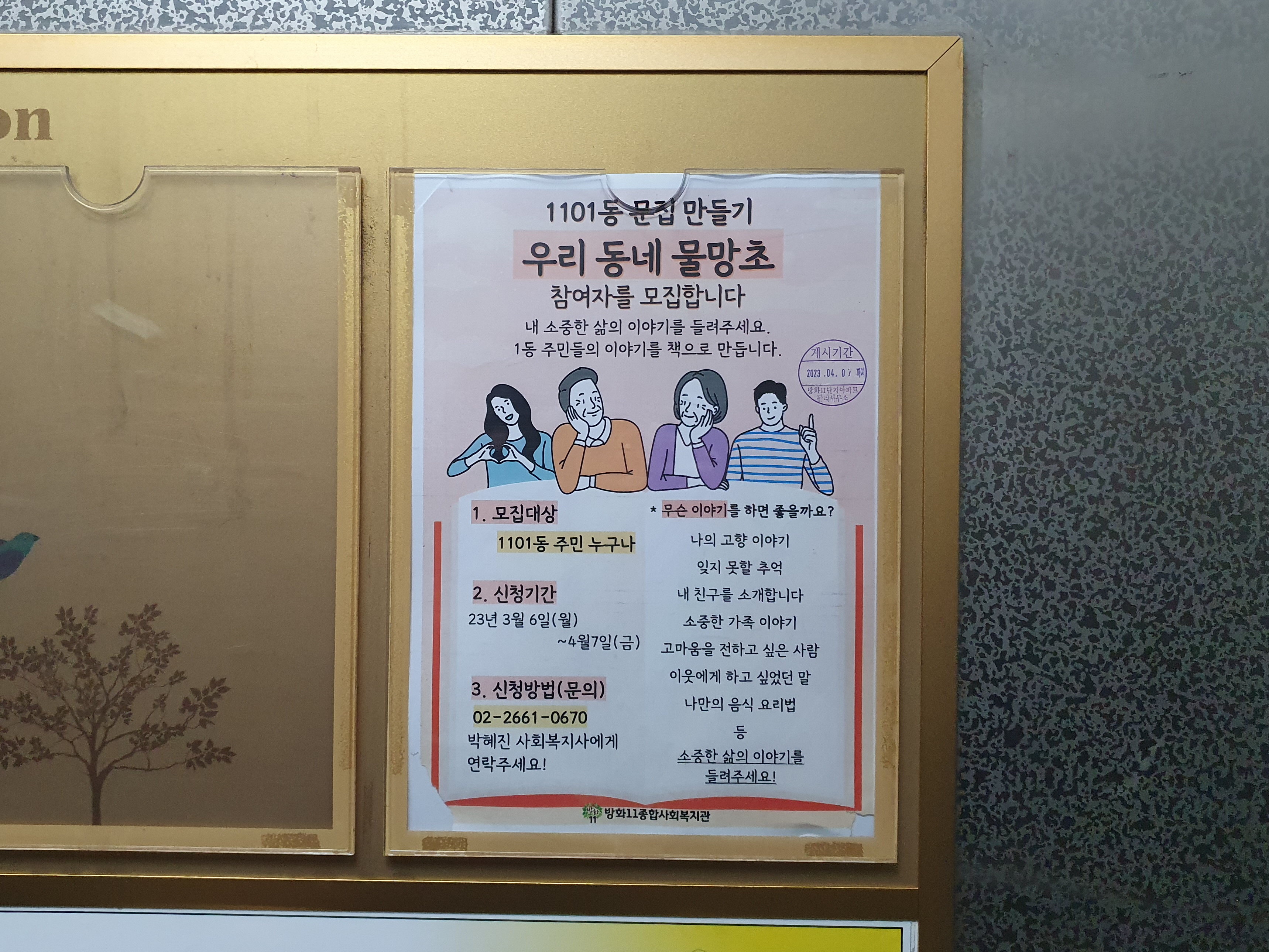 방화11단지아파트 1101동 주민들의 삶의 이야기를 엮는 문집사업입니다.