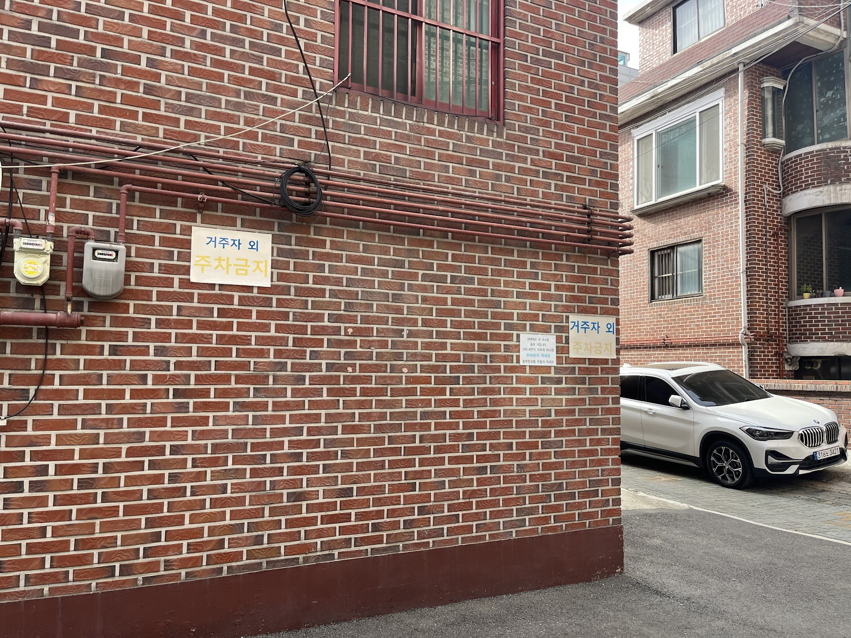 그래서인지 주택 건물 외벽에 여러 안내문이 많이 부착되어 있었습니다.