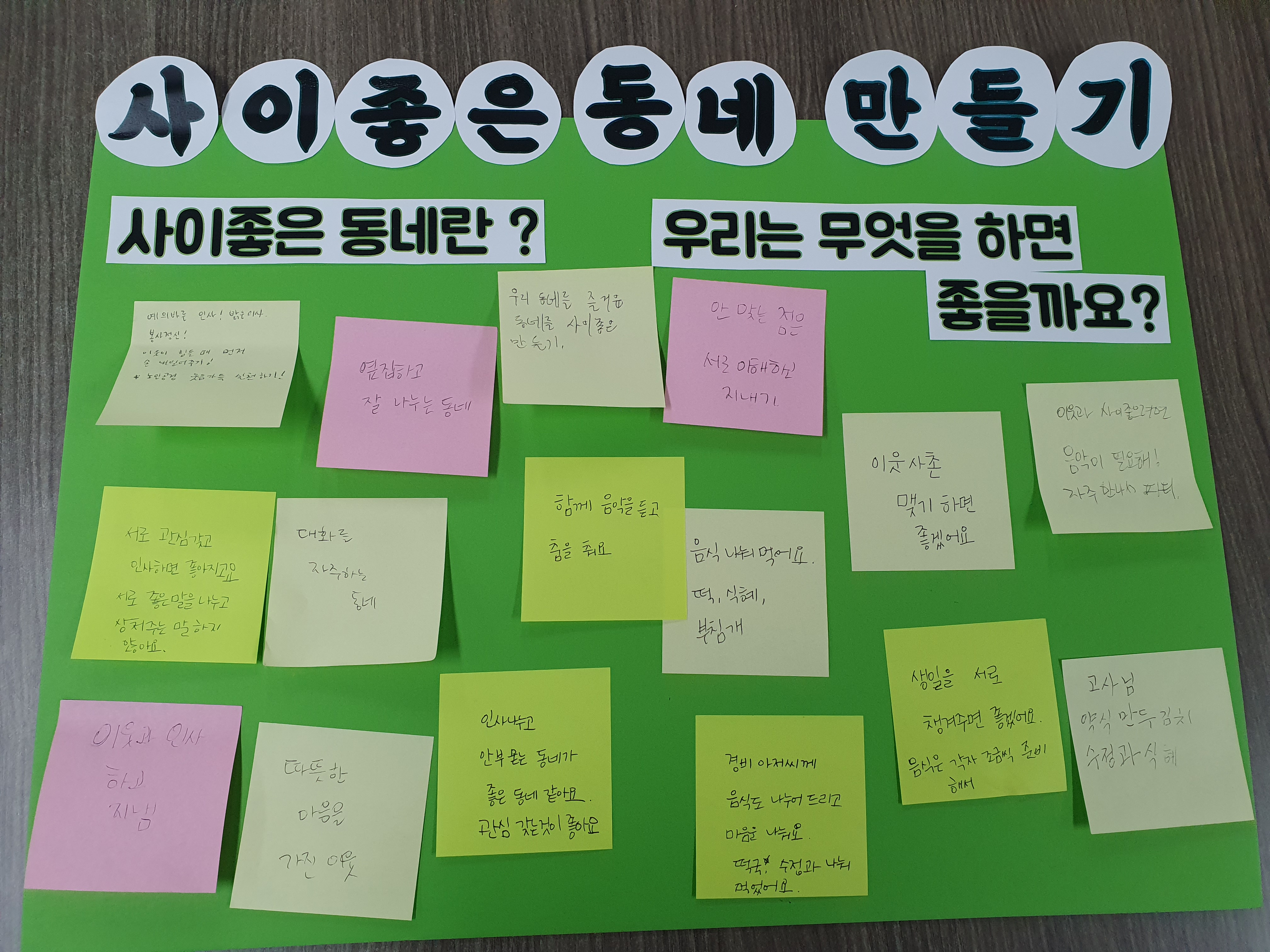 이러한 목표에 따라 주민들이 생각하시는 사이좋은 동네란 무엇인지,