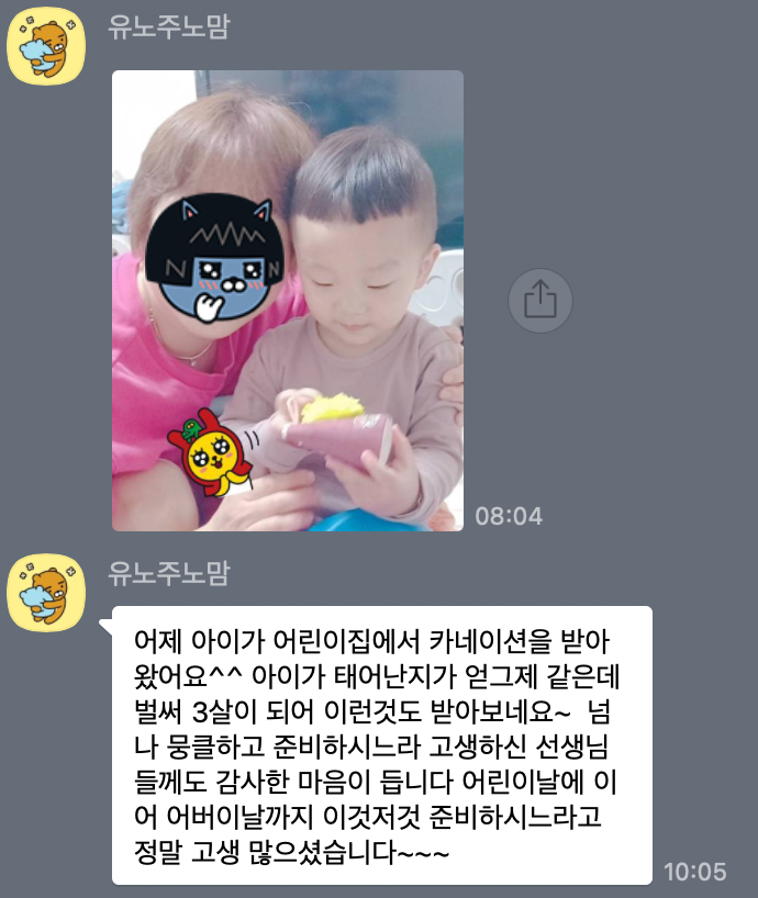 어린이집 선생님들께도 감사 인사를 먼저 전했습니다. 원장님, 선생님께 감사한 내용을 구체적으로 전하면서 어르신께서 아이들에게 전해주신 말씀도 함께 담았습니다. 아이들뿐만 아니라 캠페인이 진행될 수 있게 실무적으로 도움을 주셨던 선생님들께도 감사한 마음을 전하면 캠페인의 의미를 다지는 데에 도움이 될 거라 생각했습니다.