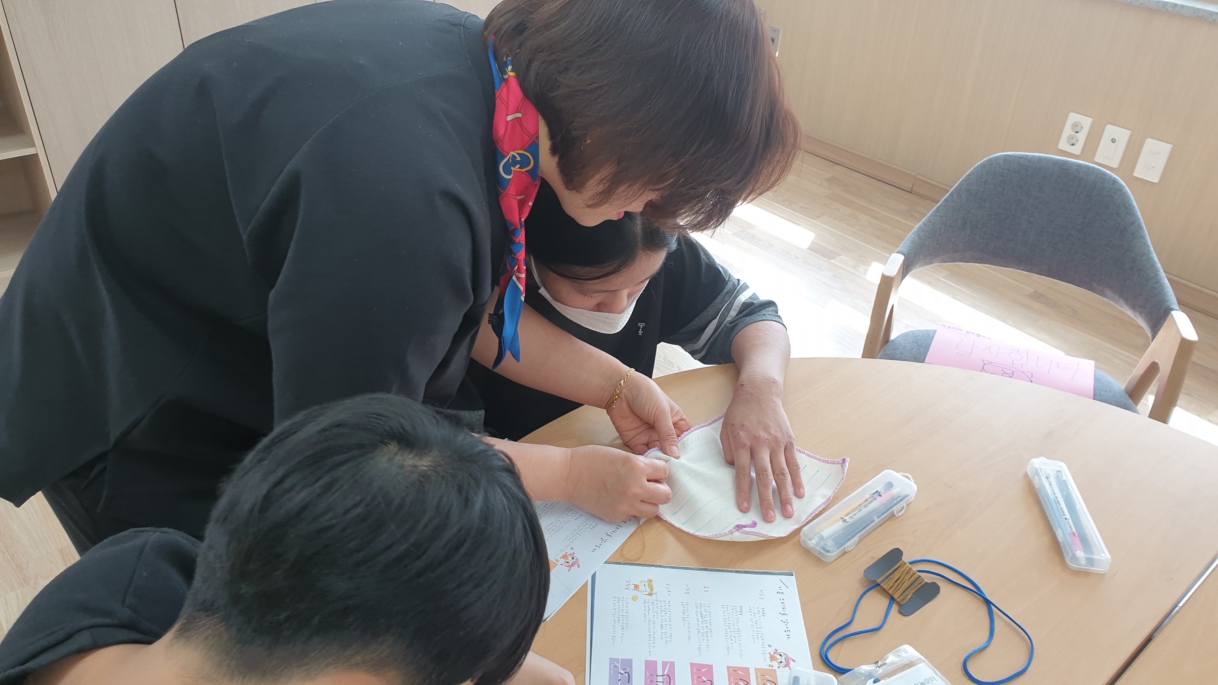덕분에 아이들이 직접 천에 바느질을 연습하며 선생님의 설명을 듣고 공부할 수 있었습니다.