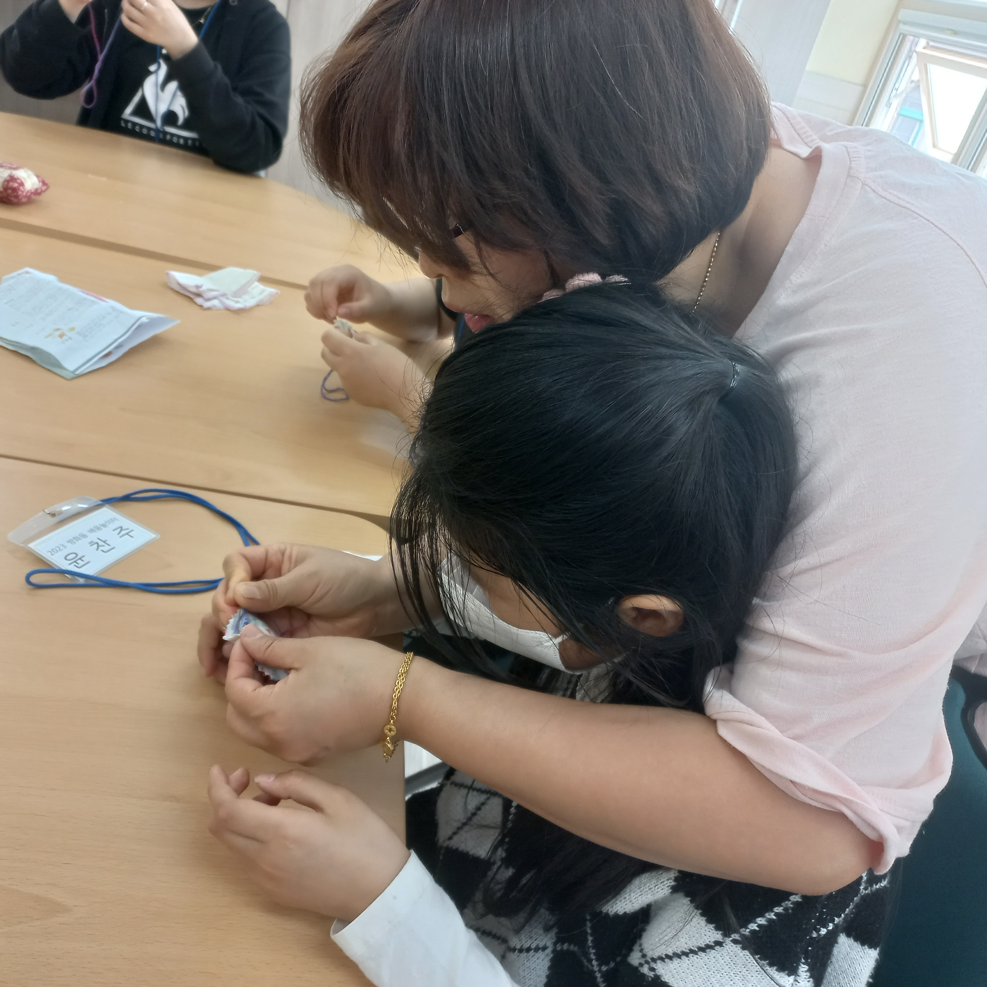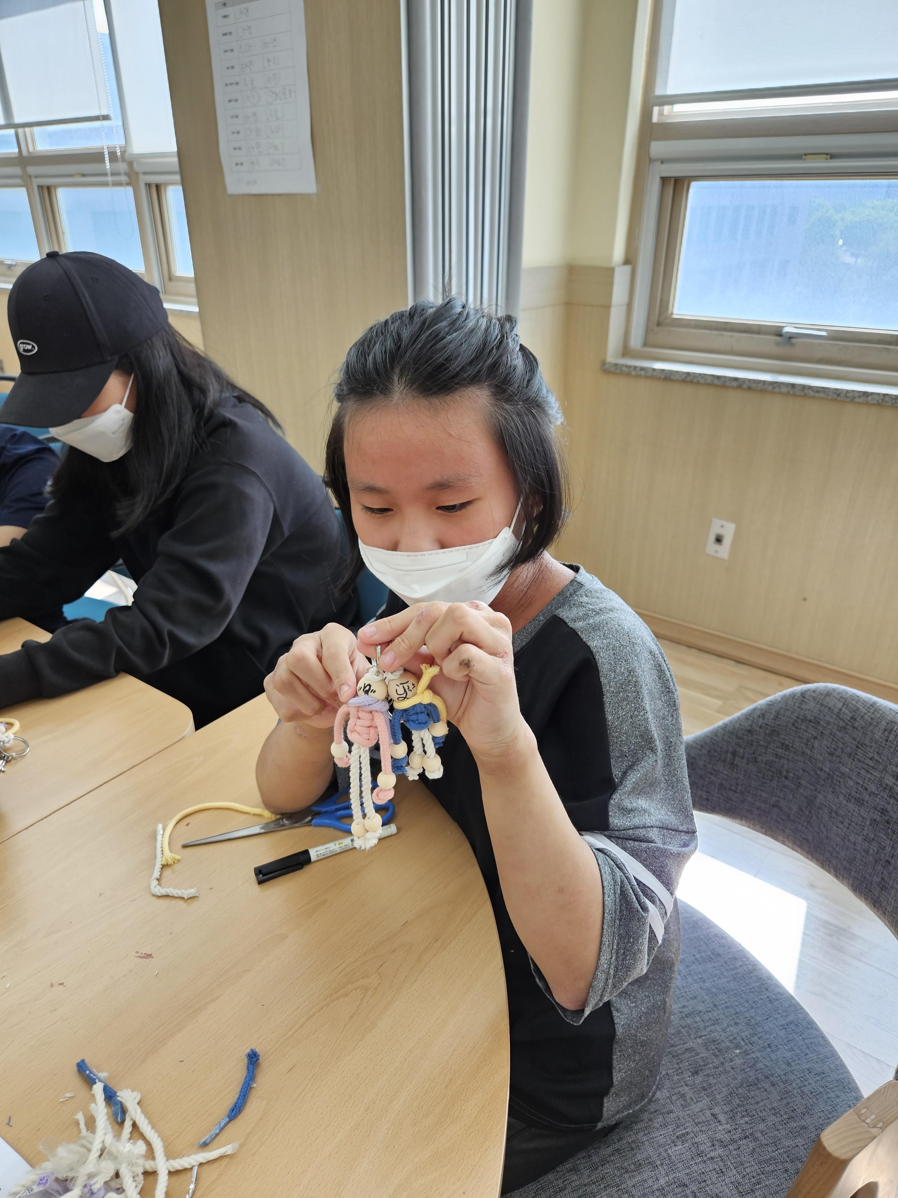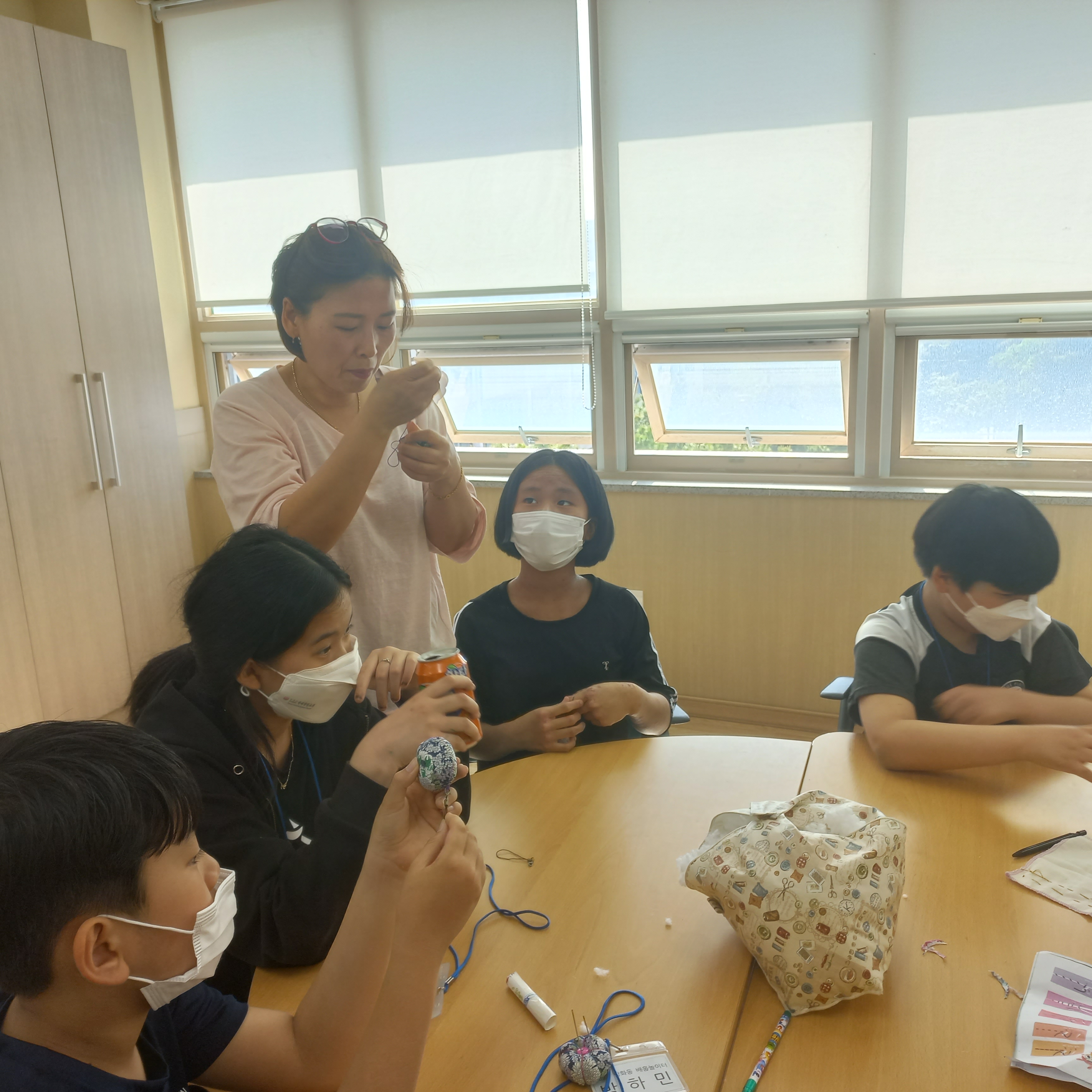 6학년인 아연 하민에게 물어보니 학교에서도 바느질은 안 배웠다고 합니다.