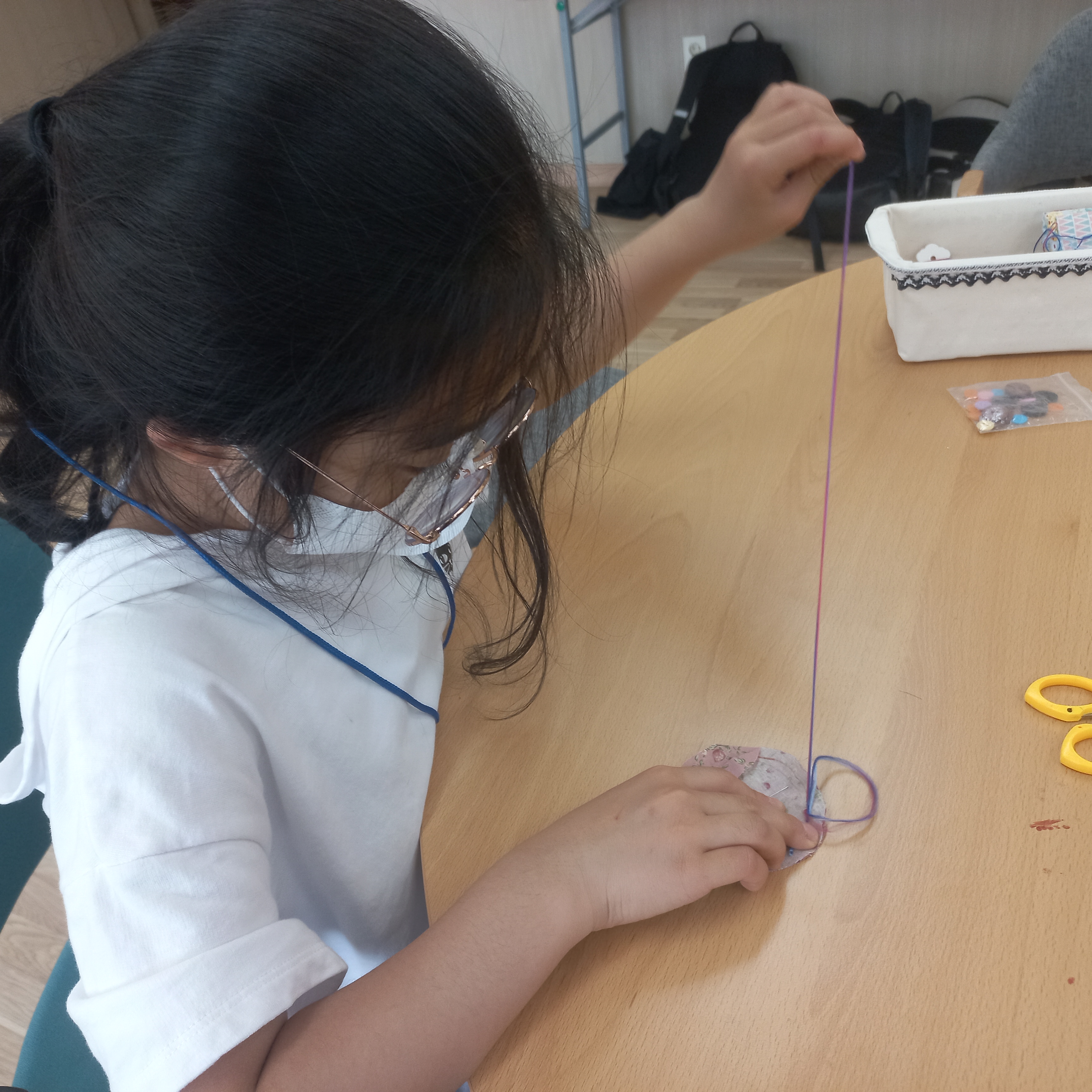 다들 처음 해보는 바느질이라 무서웠을 수도 있는데, 가끔 바늘에 찔리면서도 괜찮다고 씩씩하게 얘기하고 열심히 하는 모습이 기특했습니다.