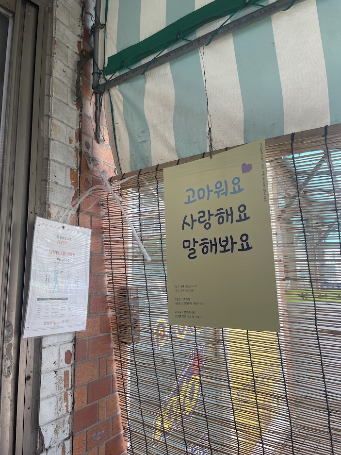 주민들이 지나다니며 잘 보실 수 있게 가게 앞 유리에 붙이는 것을 제안 드렸습니다.
