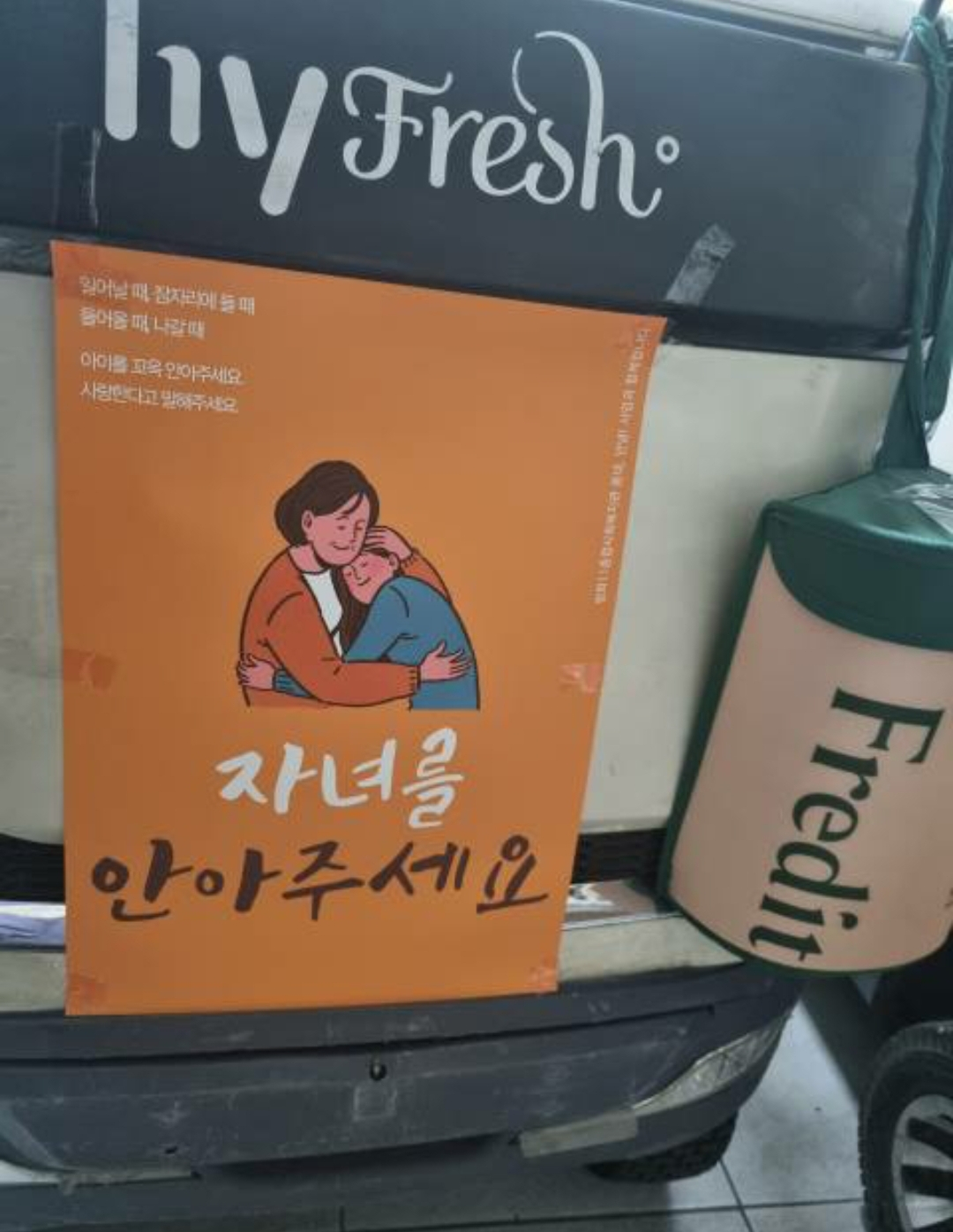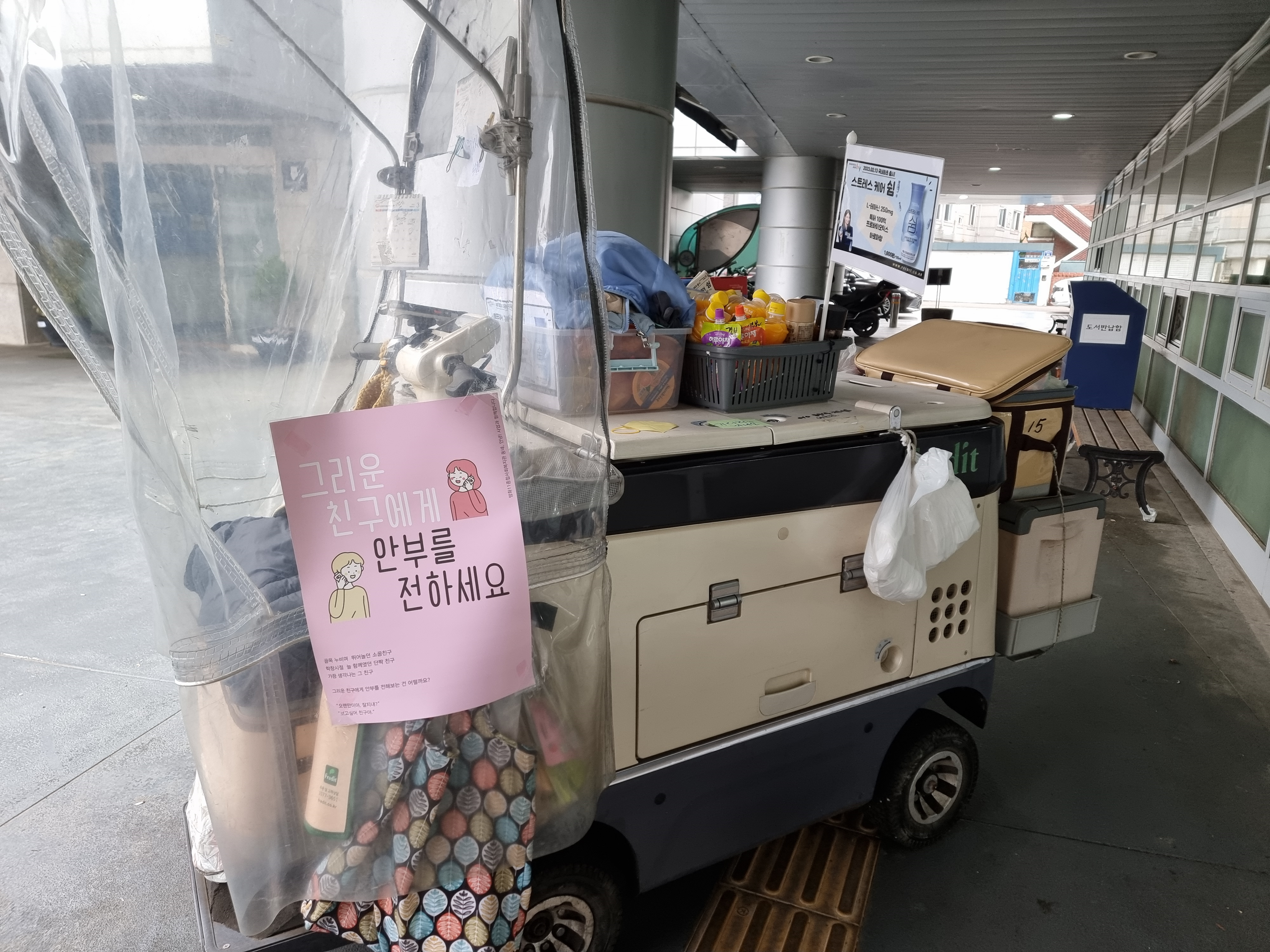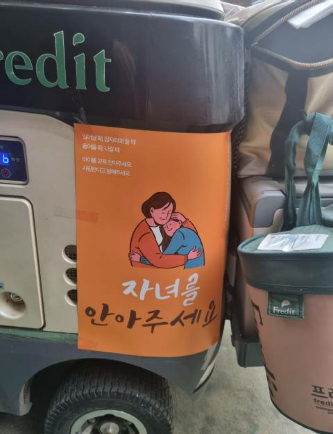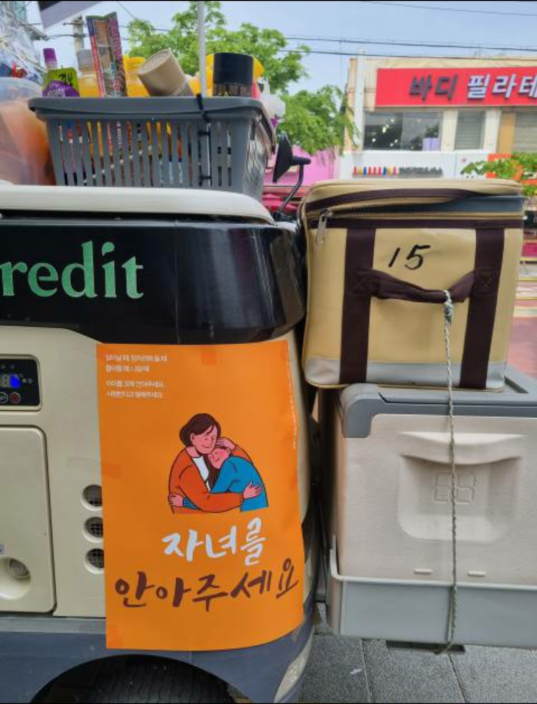 이진이 배달원님께서는 흔쾌히 카트에 포스터를 부착해주셨습니다.