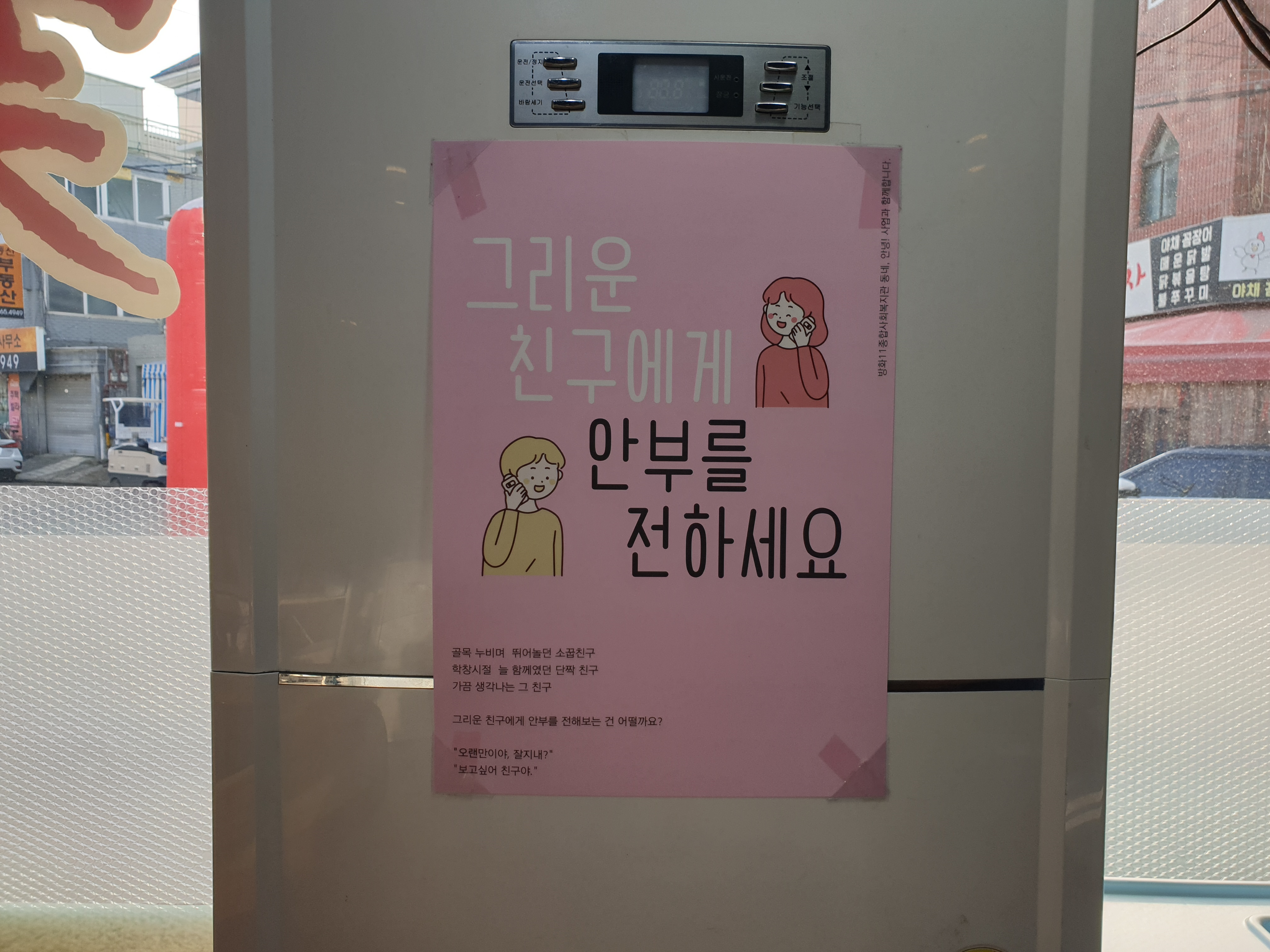 이번 상가인사캠페인 주제는 '그리운 친구에게 안부를 전하세요' 입니다.