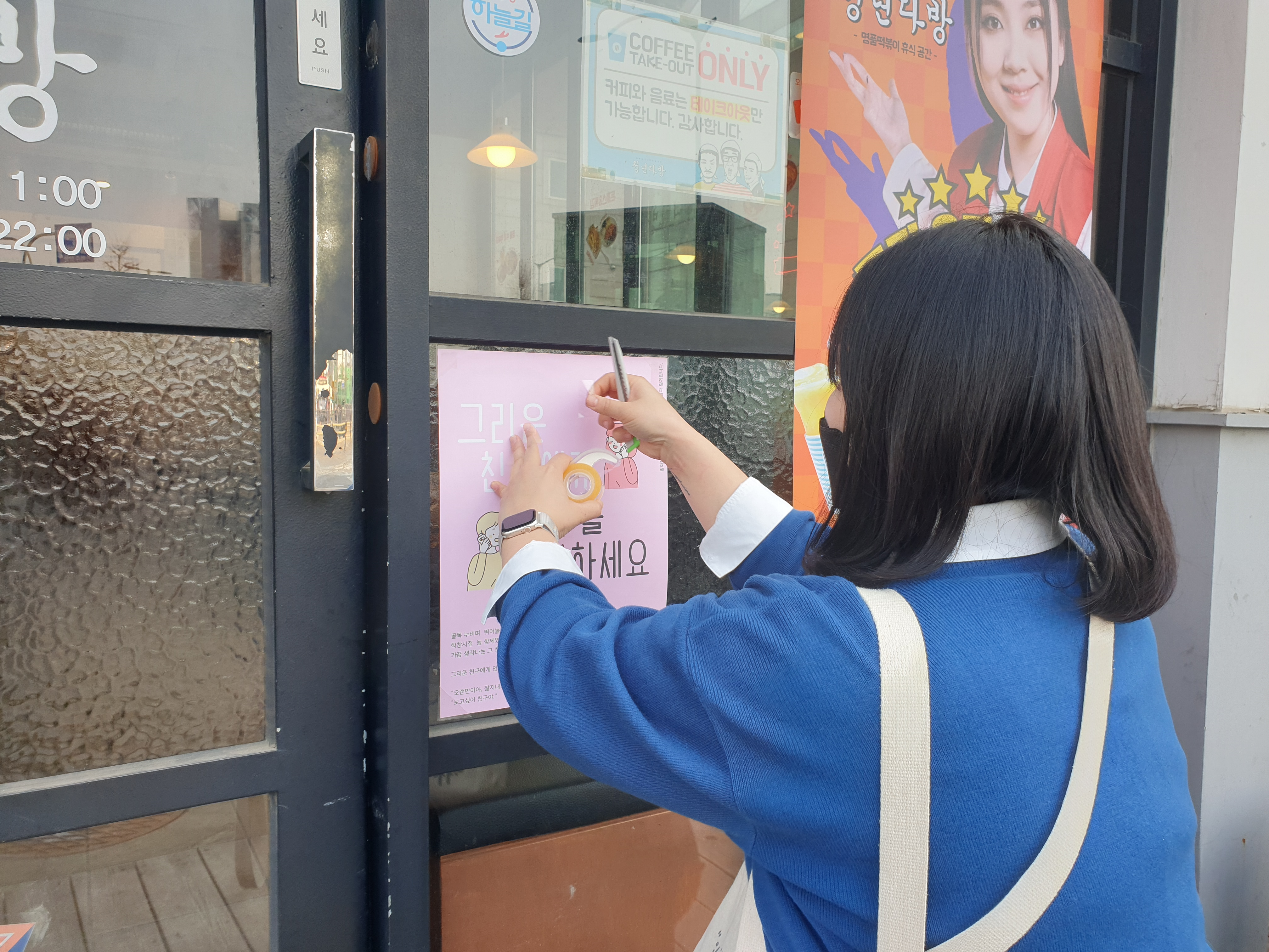 카페에도 인사캠페인 포스터를 부착할 수 있었습니다.