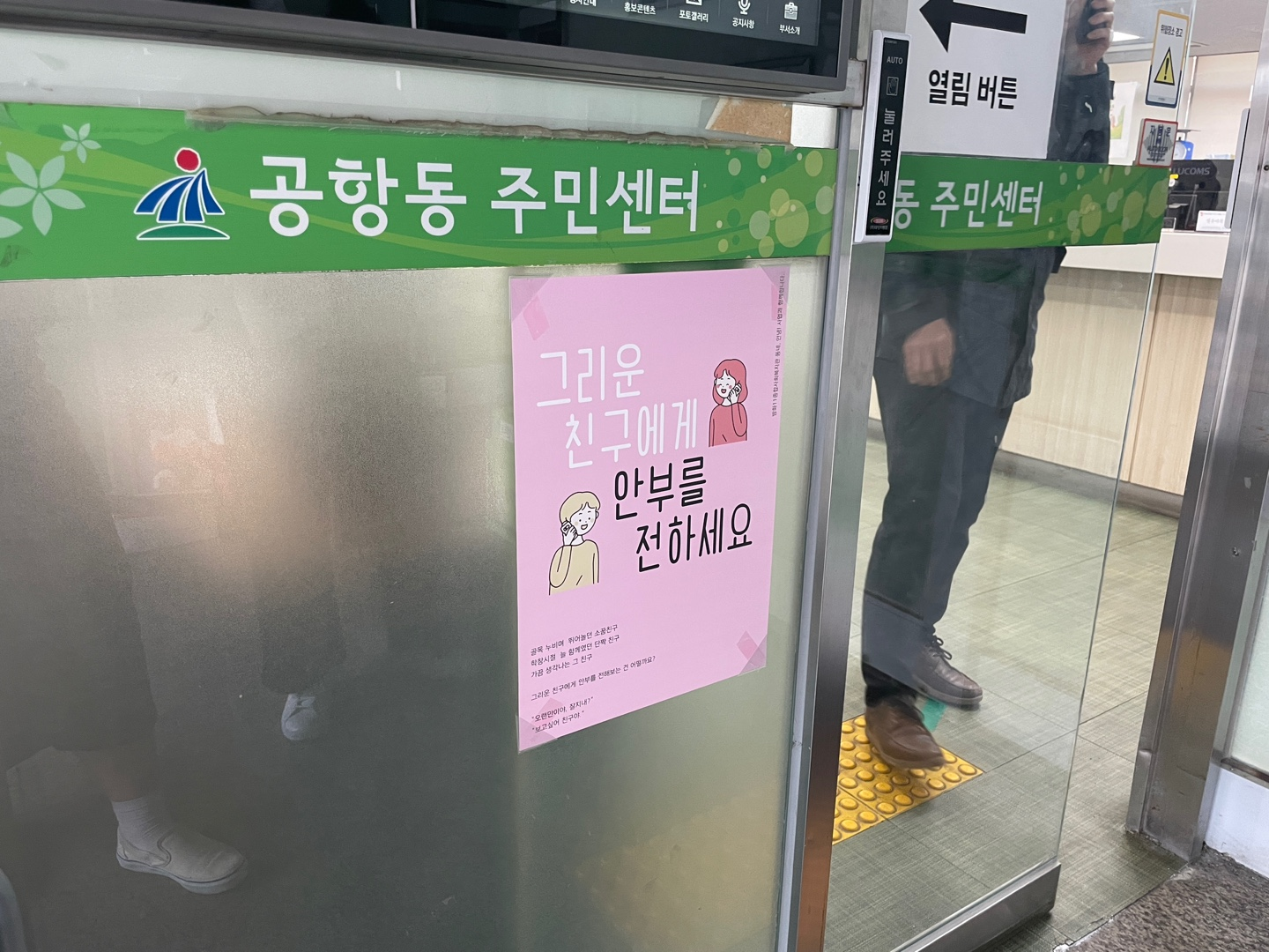 공항동 주민센터에 포스터를 부착하는 모습을 보시고,