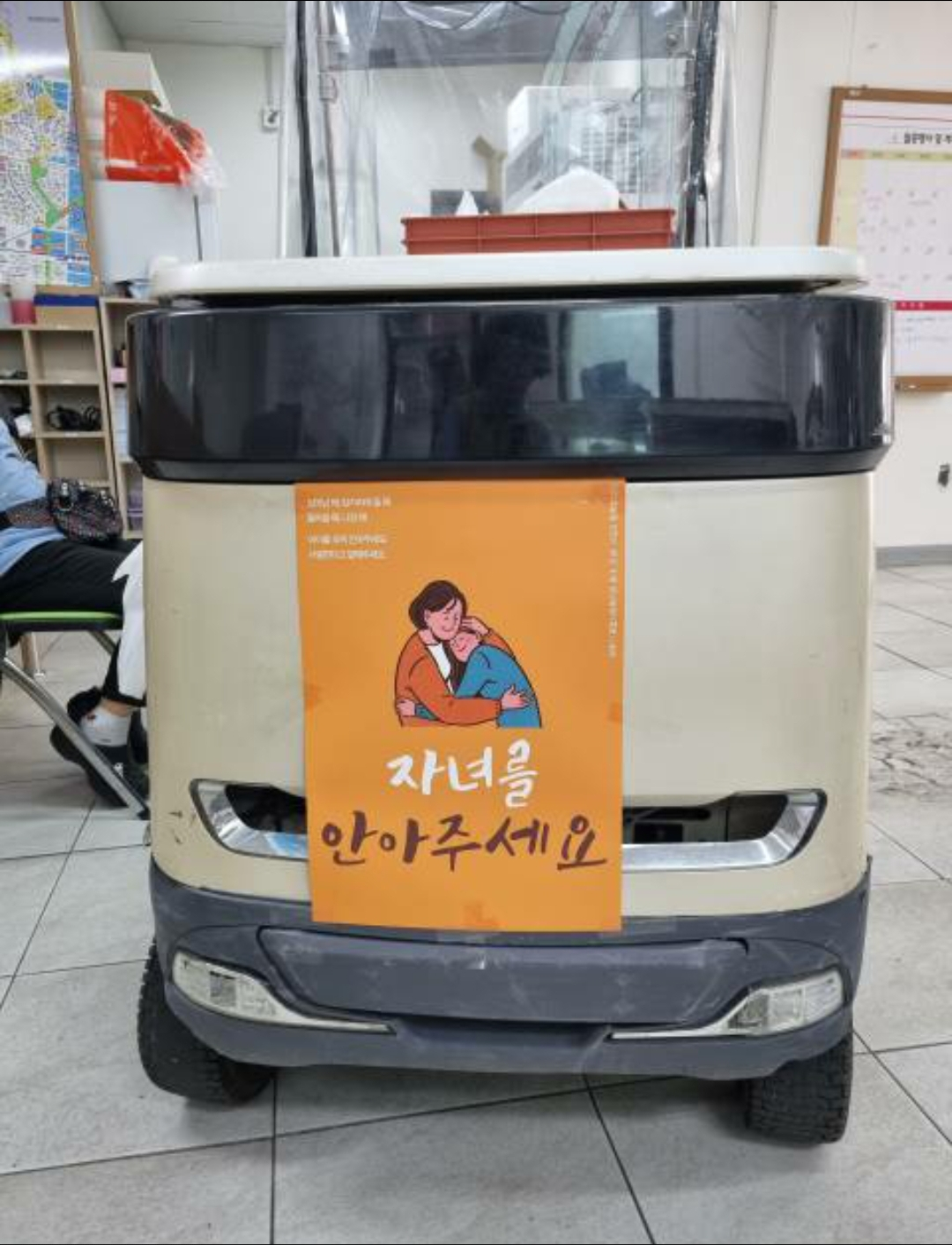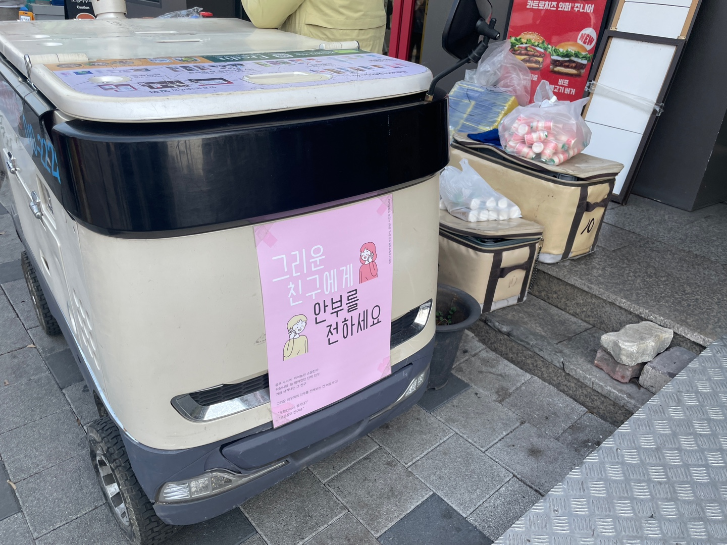 이진이 배달원님께서는 흔쾌히 카트에 포스터를 부착해주셨습니다.