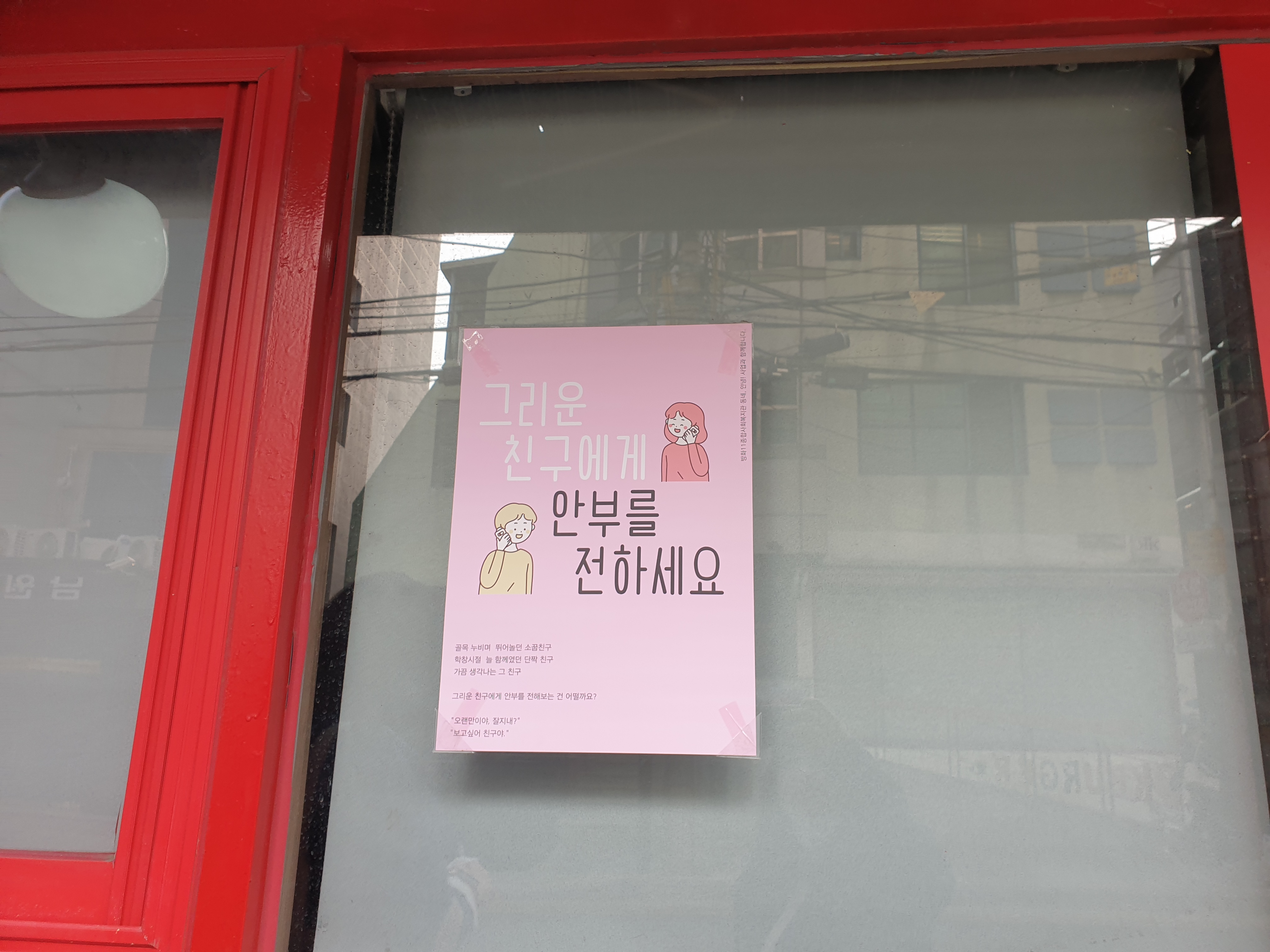이번 상가인사캠페인 주제는 '그리운 친구에게 안부를 전하세요' 입니다.