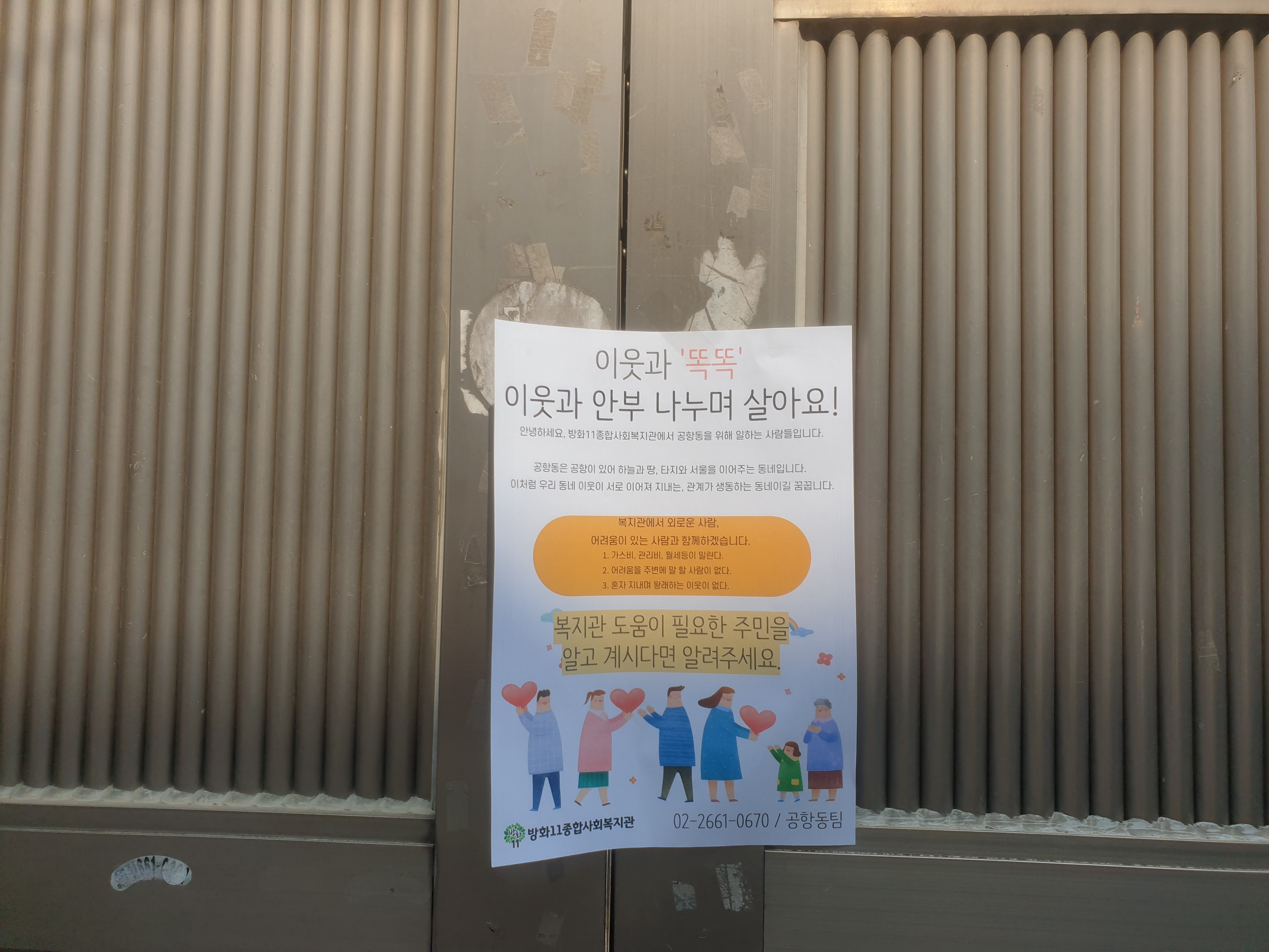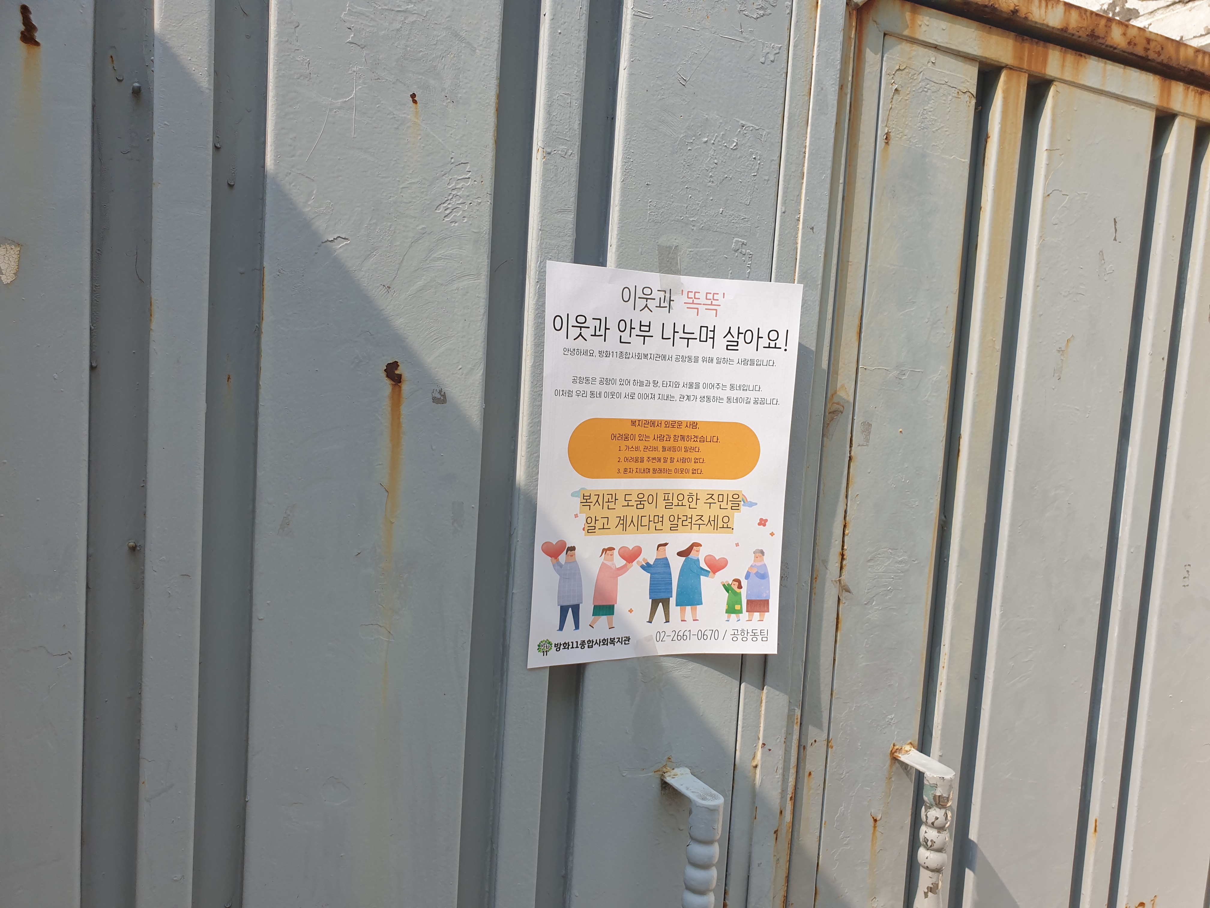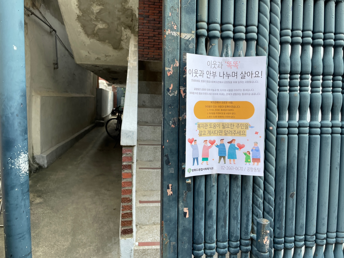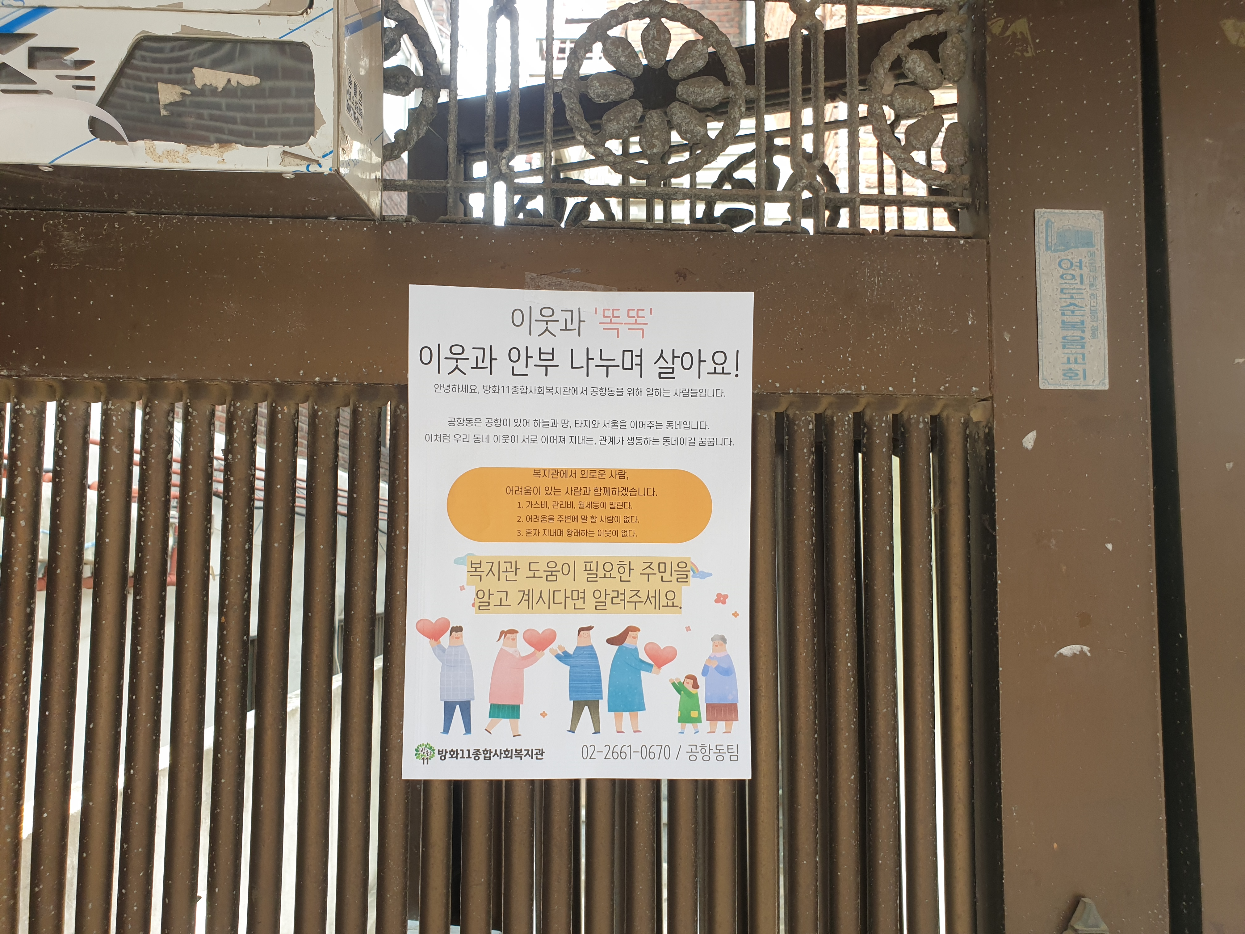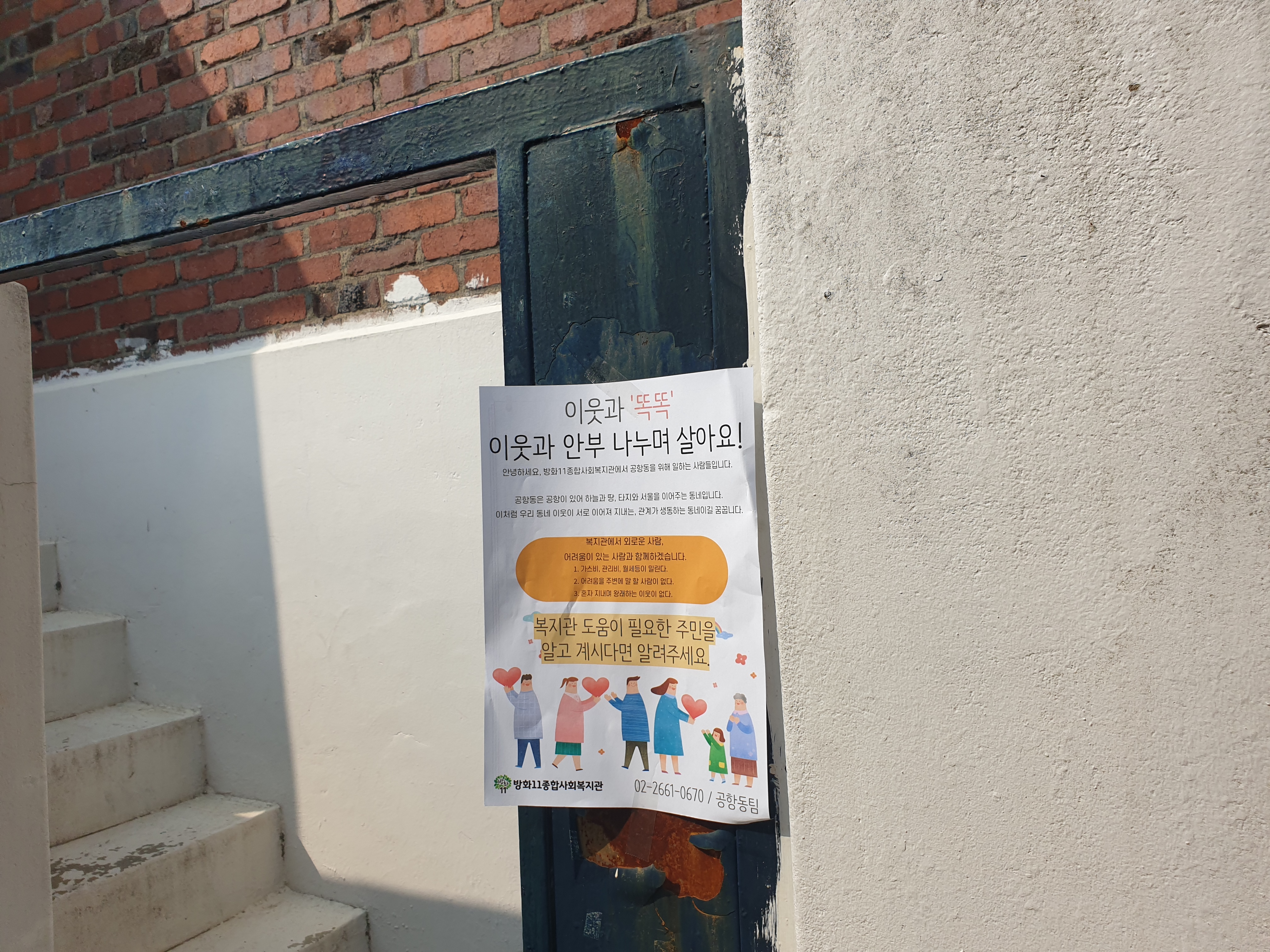 서로 다른 대문들과 집에 높낮이를 둘러보며 공항동 탐색하며 사회적 고립가구 똑똑 사업 홍보했습니다.