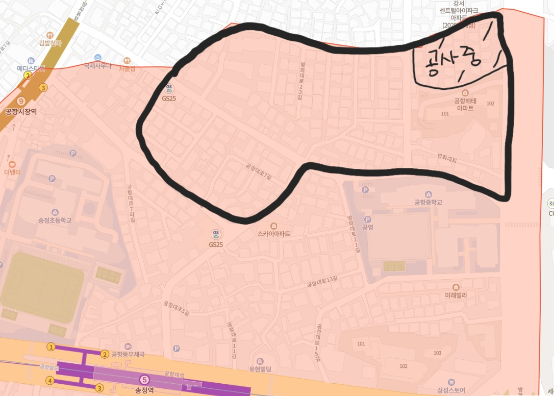오늘 걸은 이 골목은 방화1동과 공항동을 길 하나 차이로 지역이 나눠집니다.