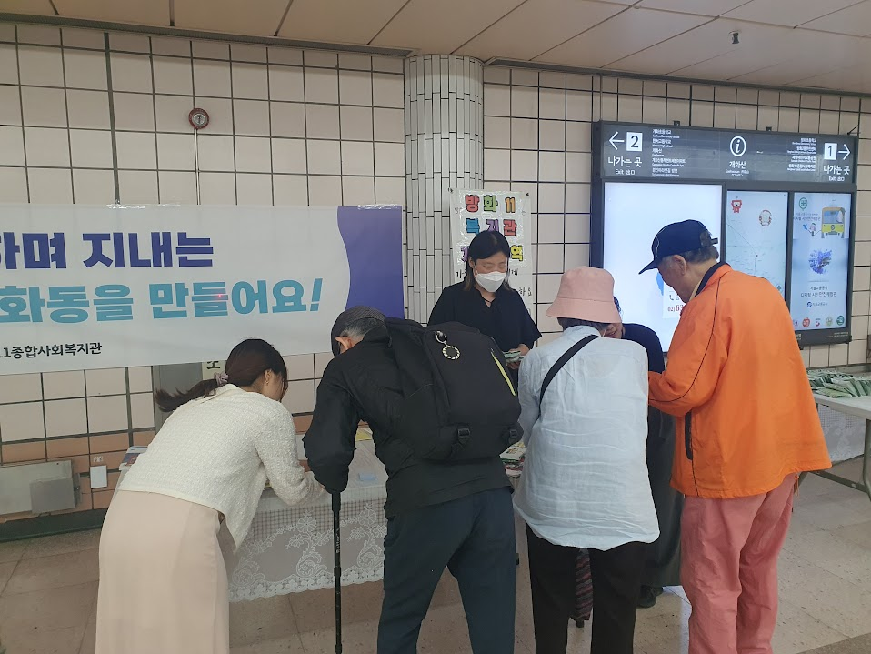 저녁 인사캠페인 시간이 다가오며, 곁에있기 1팀 팀원들과 함께 개화산역에 캠페인 물품을 설치했습니다. 팀원들과 함께 물품을 설치하는 와중에도 몇몇 주민분들께서 캠페인에 관심을 가져주셨습니다.