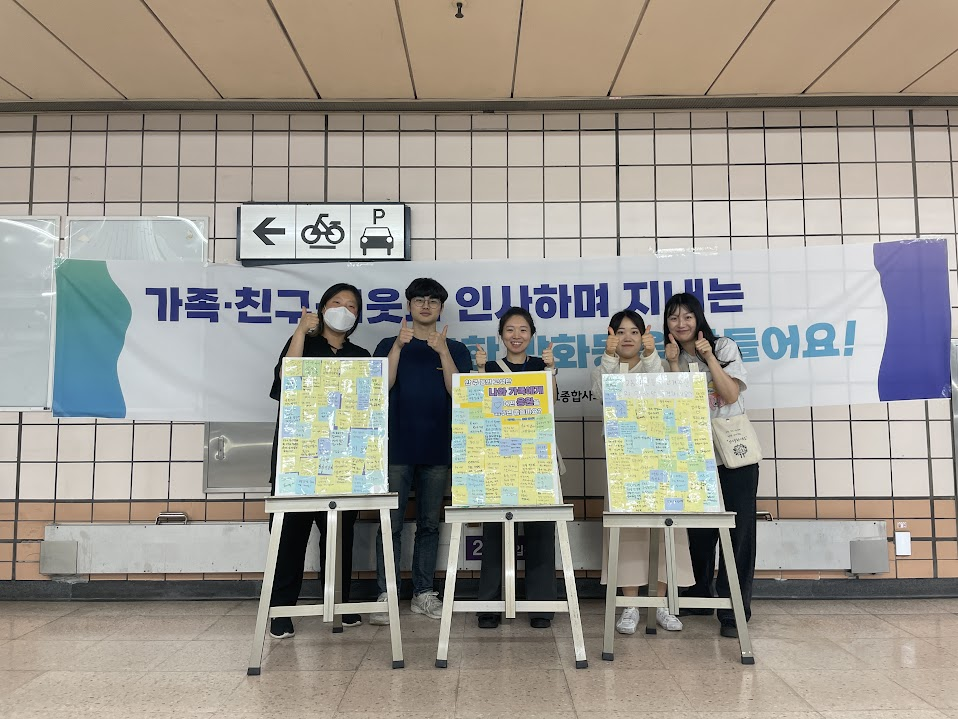 개화산역 인사캠페인을 준비, 진행하면서 주민관계가 생동하는 모습을 직접 눈으로 볼 수 있었습니다. 관계의 생동을 보며 사회는 이웃이 있고 인정이 흘러야 함을 다시 한 번 느낄 수 있었습니다.