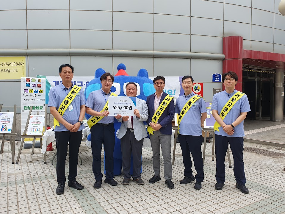 인사캠페인 당일입니다. 전날 늦게까지 준비하느라 몸은 피곤하지만, 정신은 번쩍 깼습니다. 캠페인 시작 전 미리 도착하여 테이블, 현수막을 설치하고 붙임쪽지판을 설치했습니다. 곁에있기 1팀 동료와 함께 고민하며 설치하니 든든했습니다. 인사캠페인이 시작됨과 동시에, 개화산역 기부금 전달식이 있었습니다. 김일배 역장님께서 권순범 관장님께 기부금을 전달해주셨습니다.