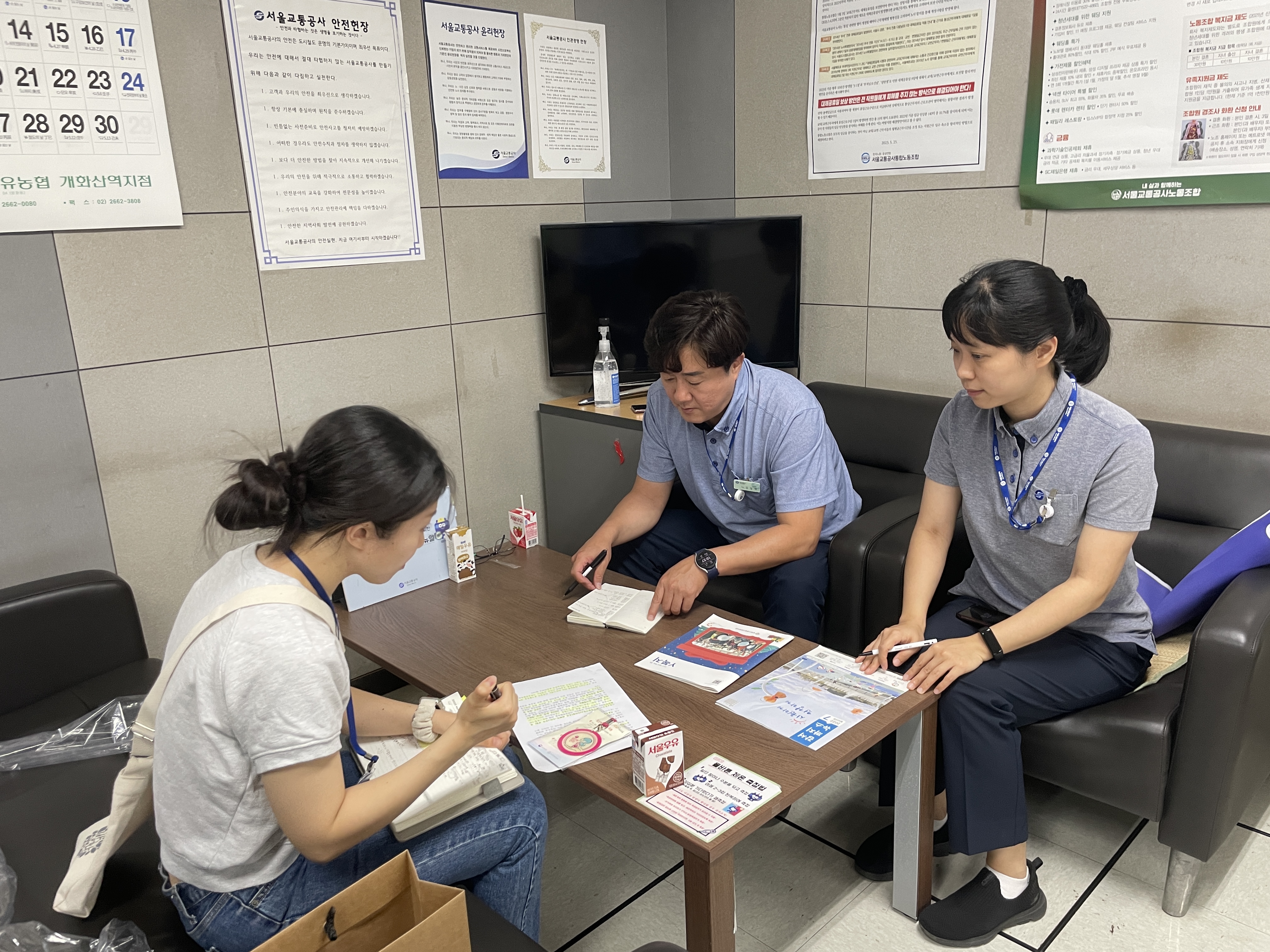개화산역 김일배 역장님, 심상우 과장님을 뵙고 인사나눴습니다. 올해는 개화산역과 상·하반기 총 두 번의 인사캠페인을 계획하고 있습니다. 상반기 인사캠페인은 작년과 동일하게 붙임쪽지판을 통해 인사를 나누는 방식이지만, 우리의 이웃인 역무원에게 응원과 감사의 메시지를 남기는 인사캠페인을 제안드렸습니다.