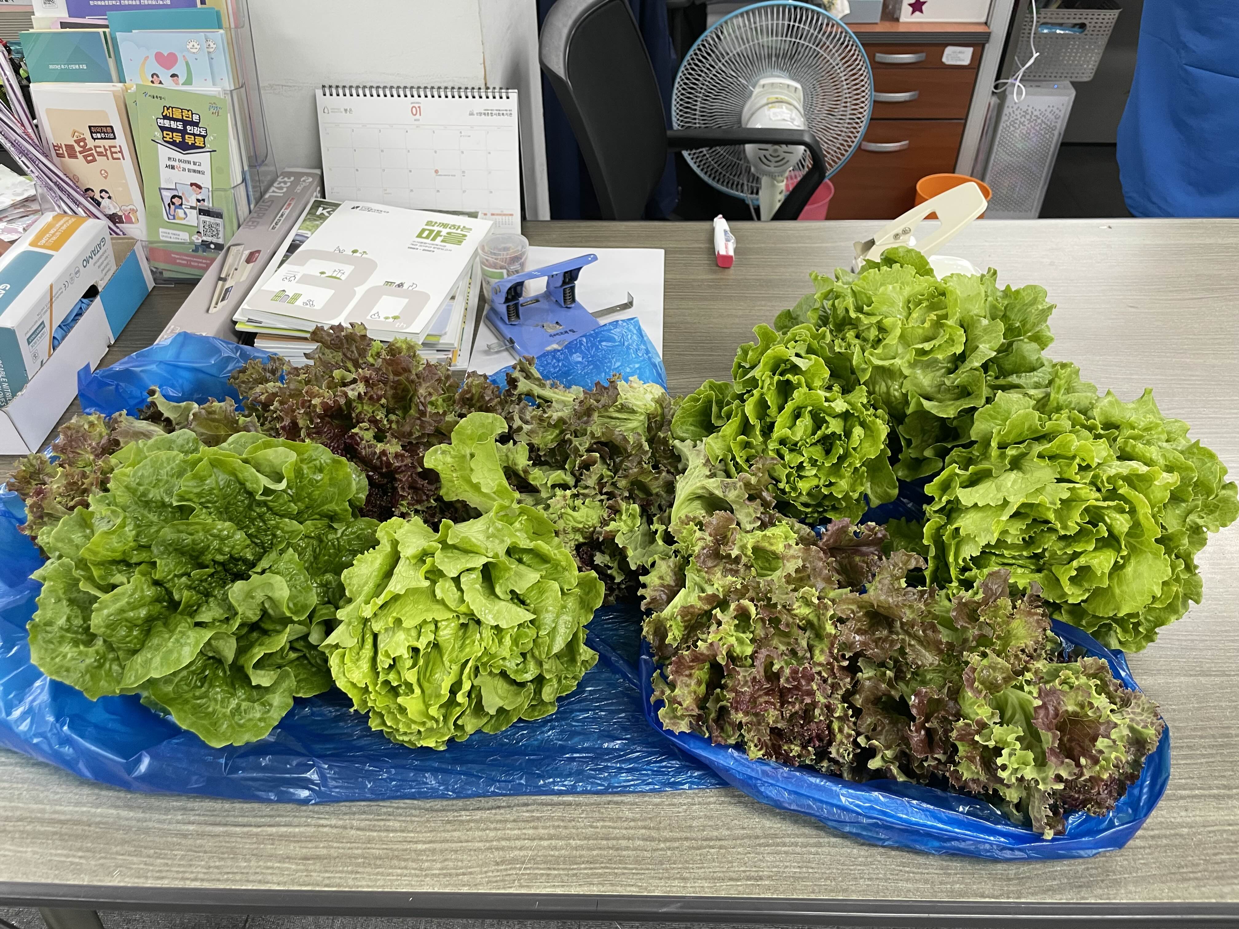 복지관으로 돌아와 권민지 과장님께 말씀드렸더니, 주민분들과 함께 나눠도 좋겠다고 조언해주셨습니다. 양 씨 어르신께 선물해주신 상추를 주민들과 함께 나누어도 괜찮을지 여쭸습니다.