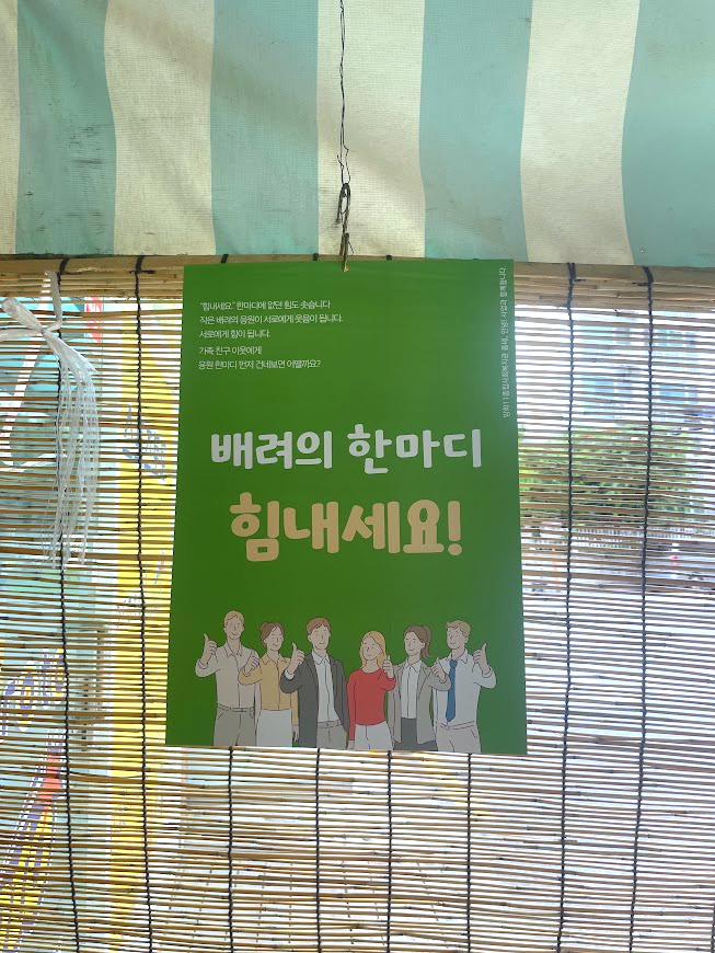 사장님께 상가인사캠페인의 취지를 설명드리고, 포스터 부착을 제안드렸습니다. 사장님께서 흔쾌히 허락해주셨습니다.