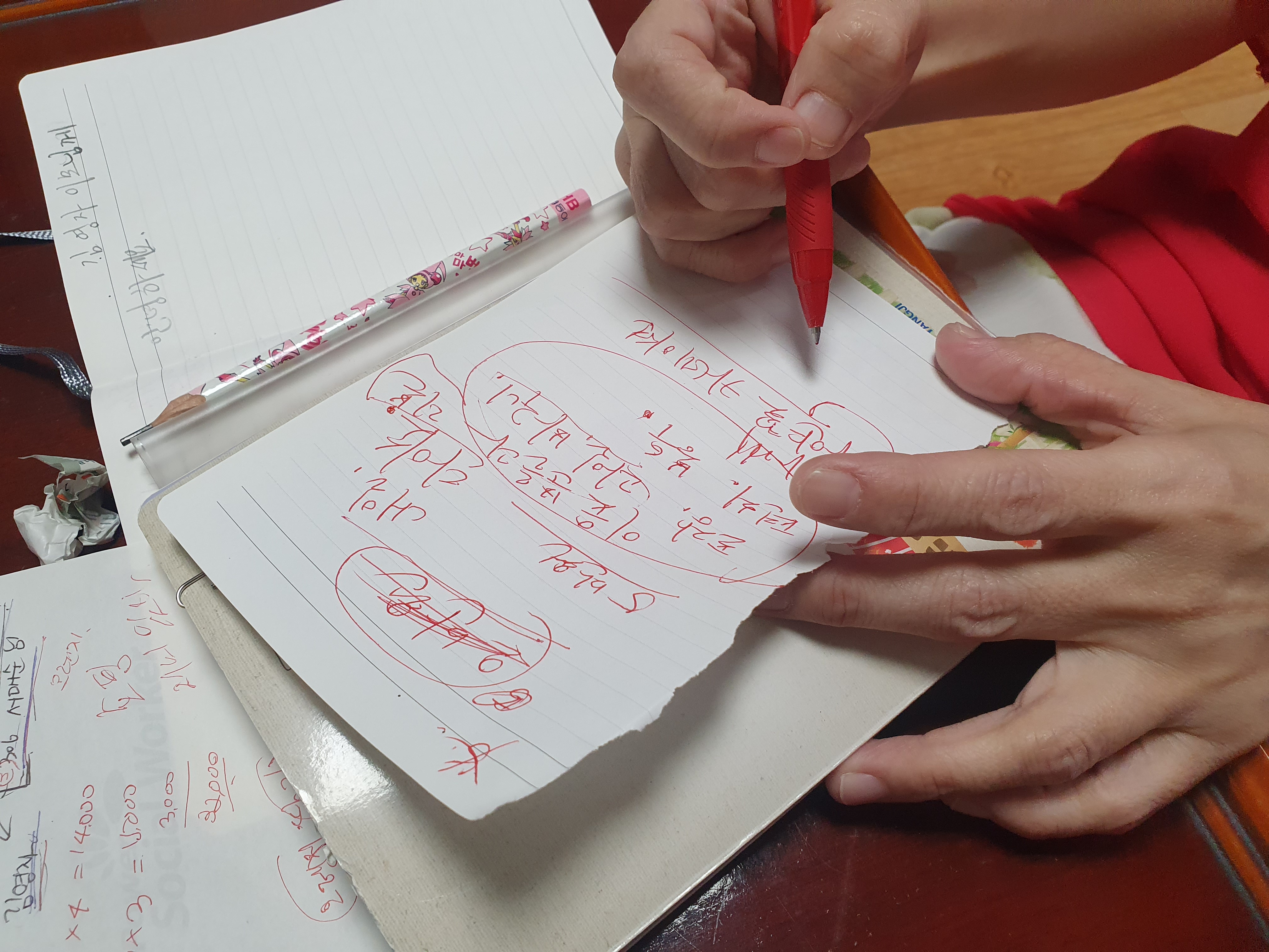 여러 가지 준비물들과 장 보러 가는 루트까지 직접 적으셨습니다.