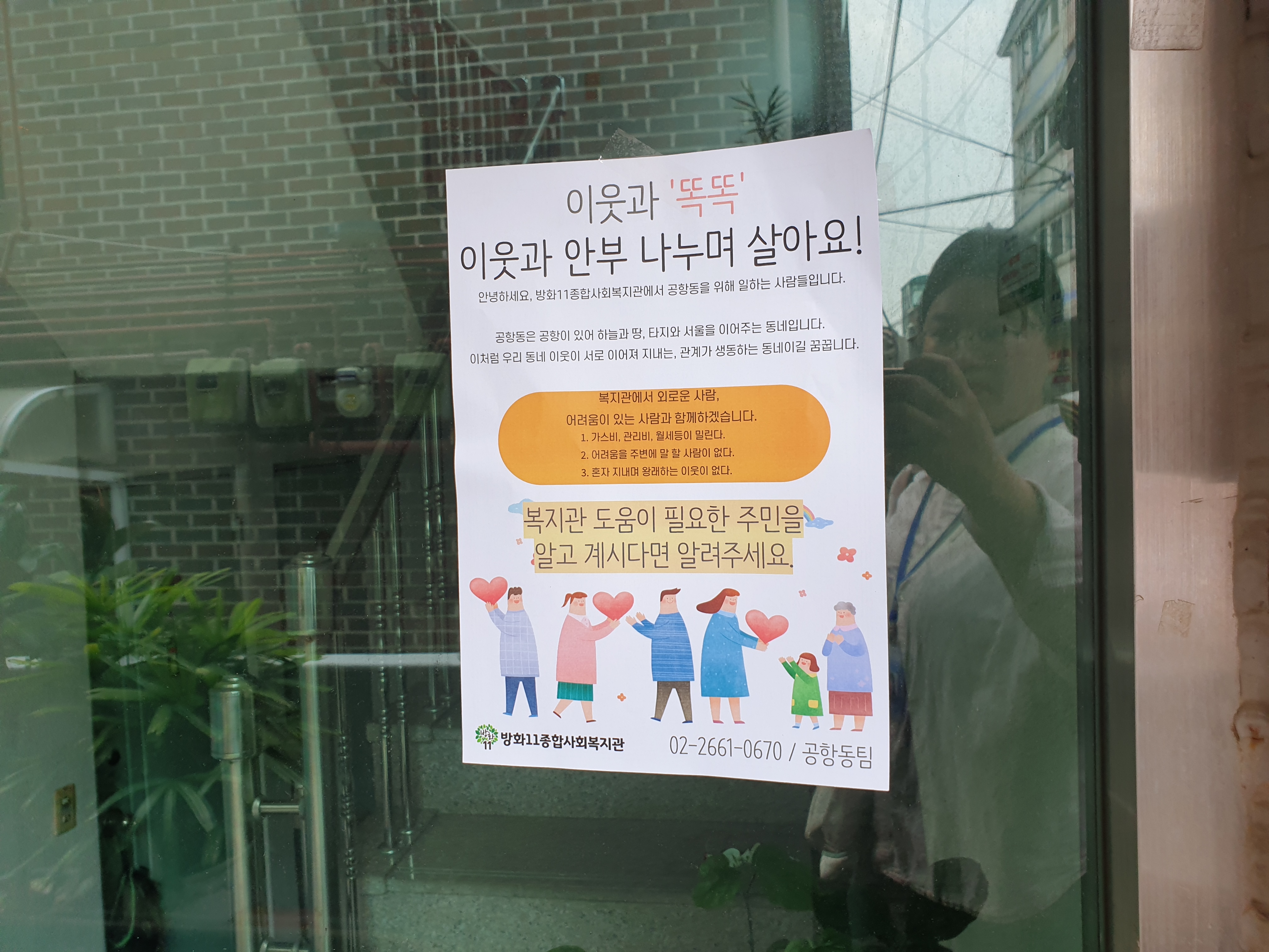 “안녕하세요. 방화11종합사회복지관에서 나왔습니다.