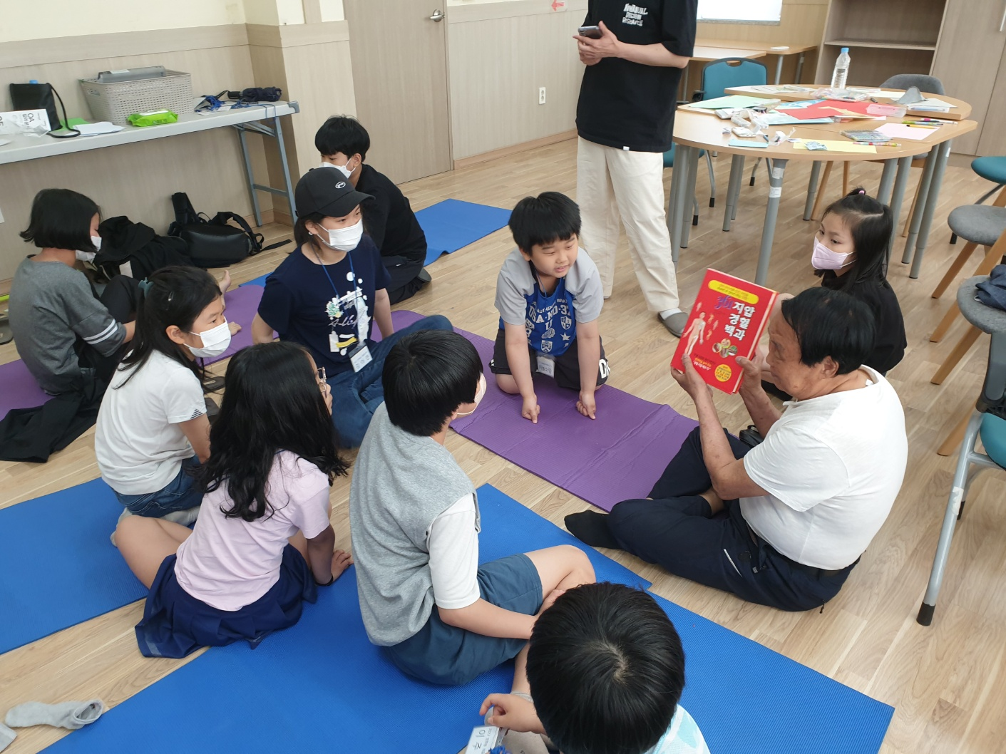 아이들도 준비된 매트를 바닥에 깔고 자리에 앉습니다.