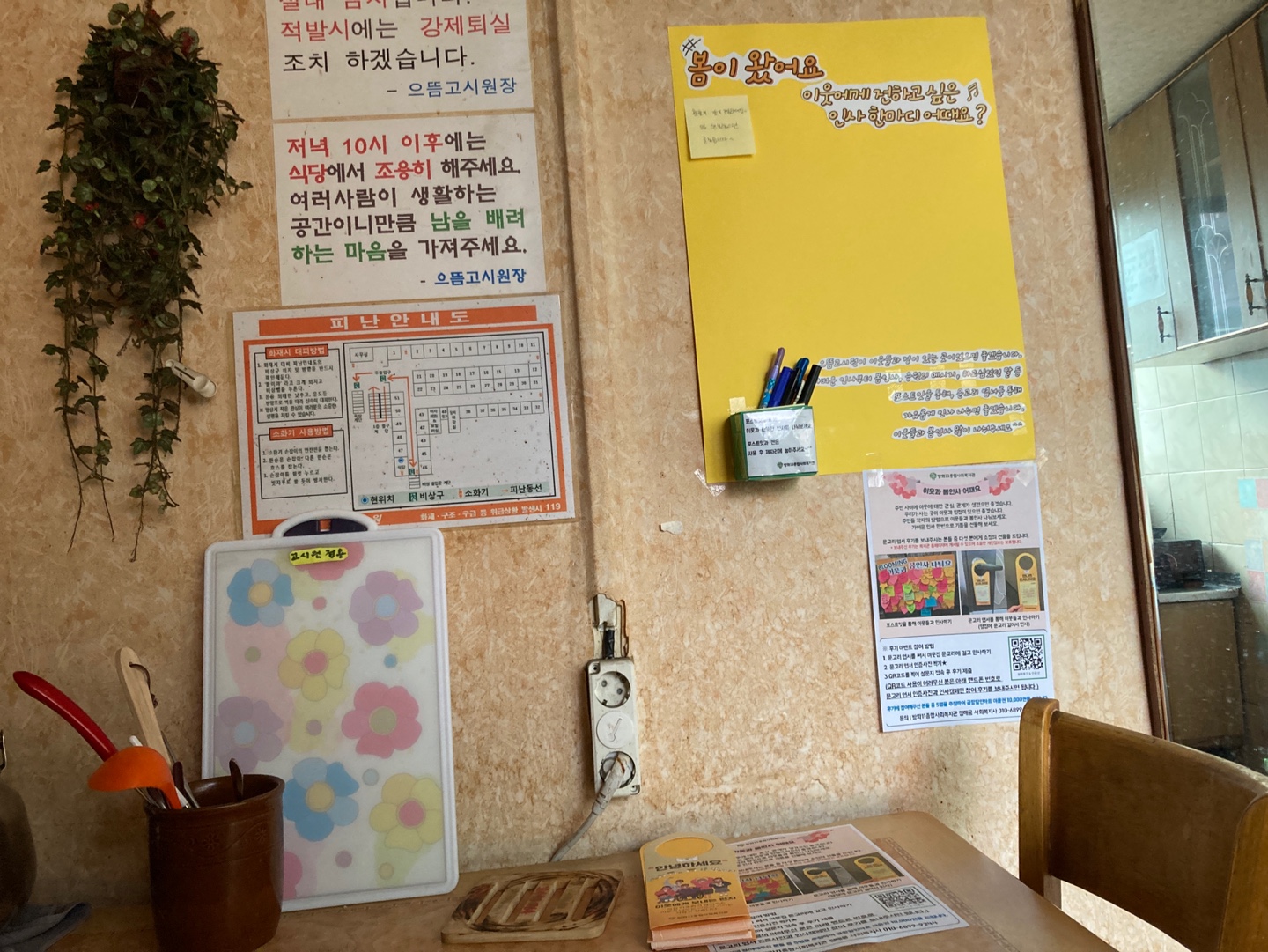 공용주방에는 사람들이 한 번씩 왔다 가니까요. 공용주방 잘 보이는 곳에 게시판을 붙여놔도 되겠네요.”