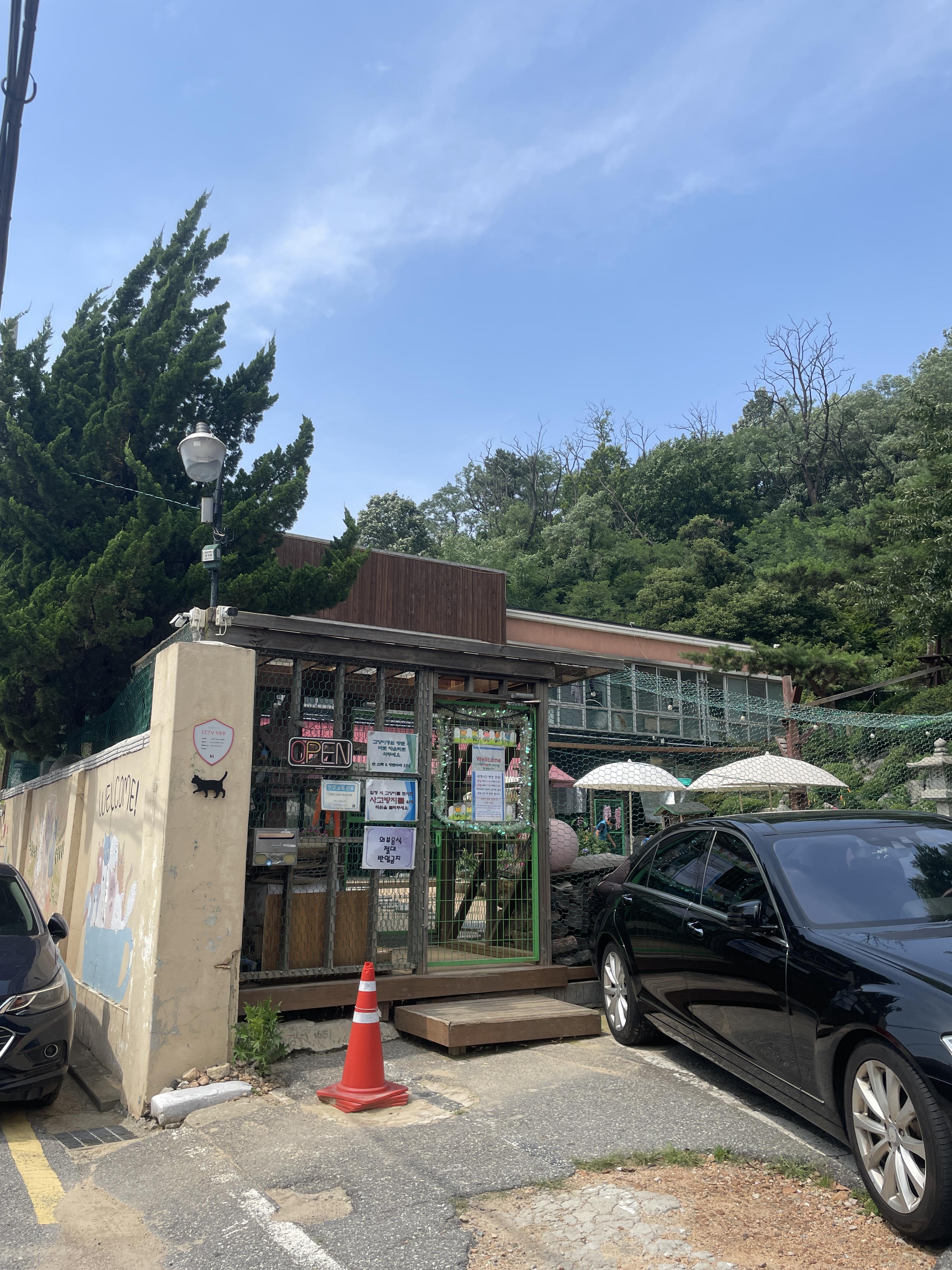 16통에 있는 '고양이정원' 입니다. 고양이정원은 국내 최초의 야외 고양이 카페라고 합니다. 반려묘와 함께 편안한 시간을 보낼 수 있는 곳으로, 국내 곳곳에 고양이 집사분들이 방문하는 명소입니다.