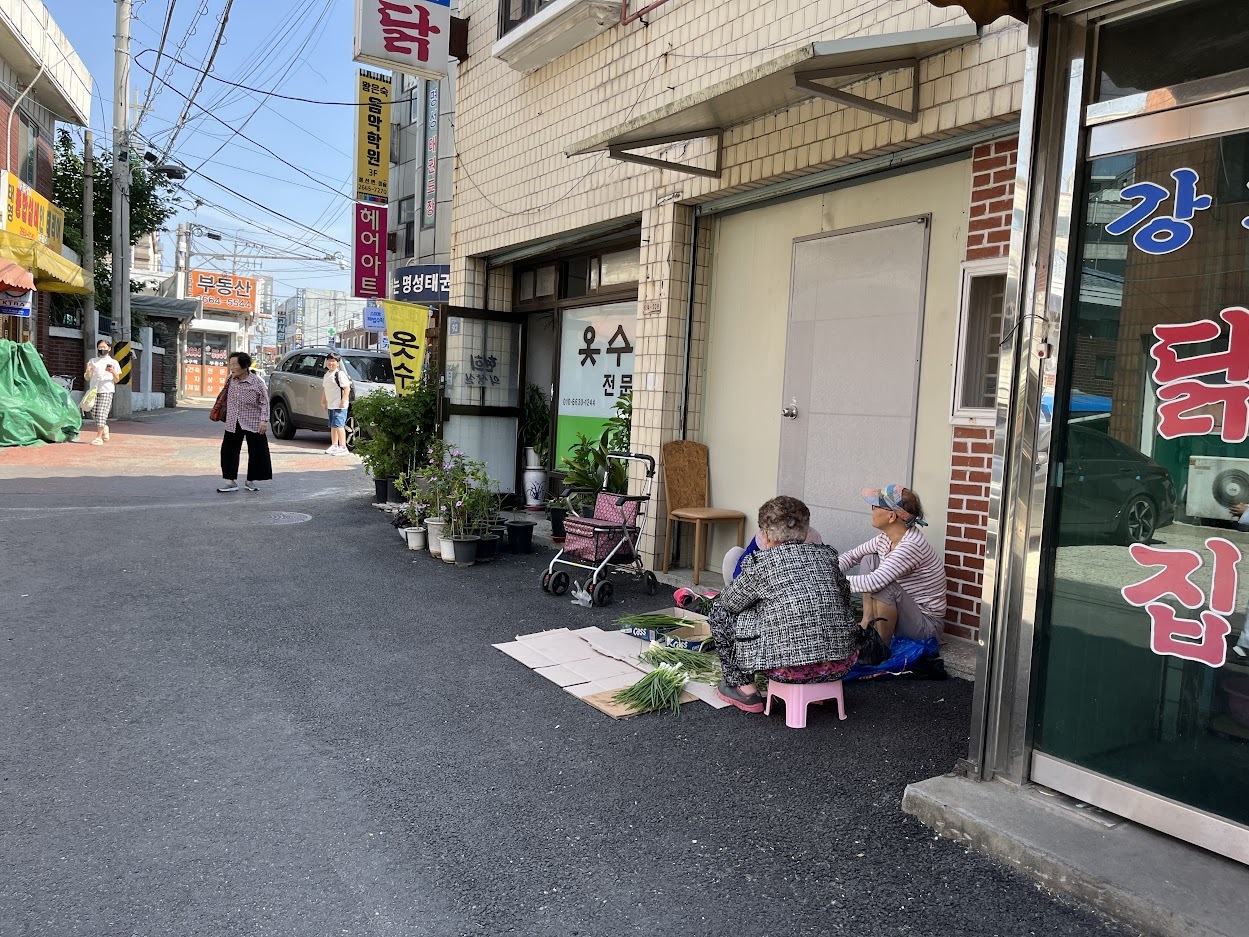 나물을 다듬으며 자연스럽게 동네 이야기를 했습니다.