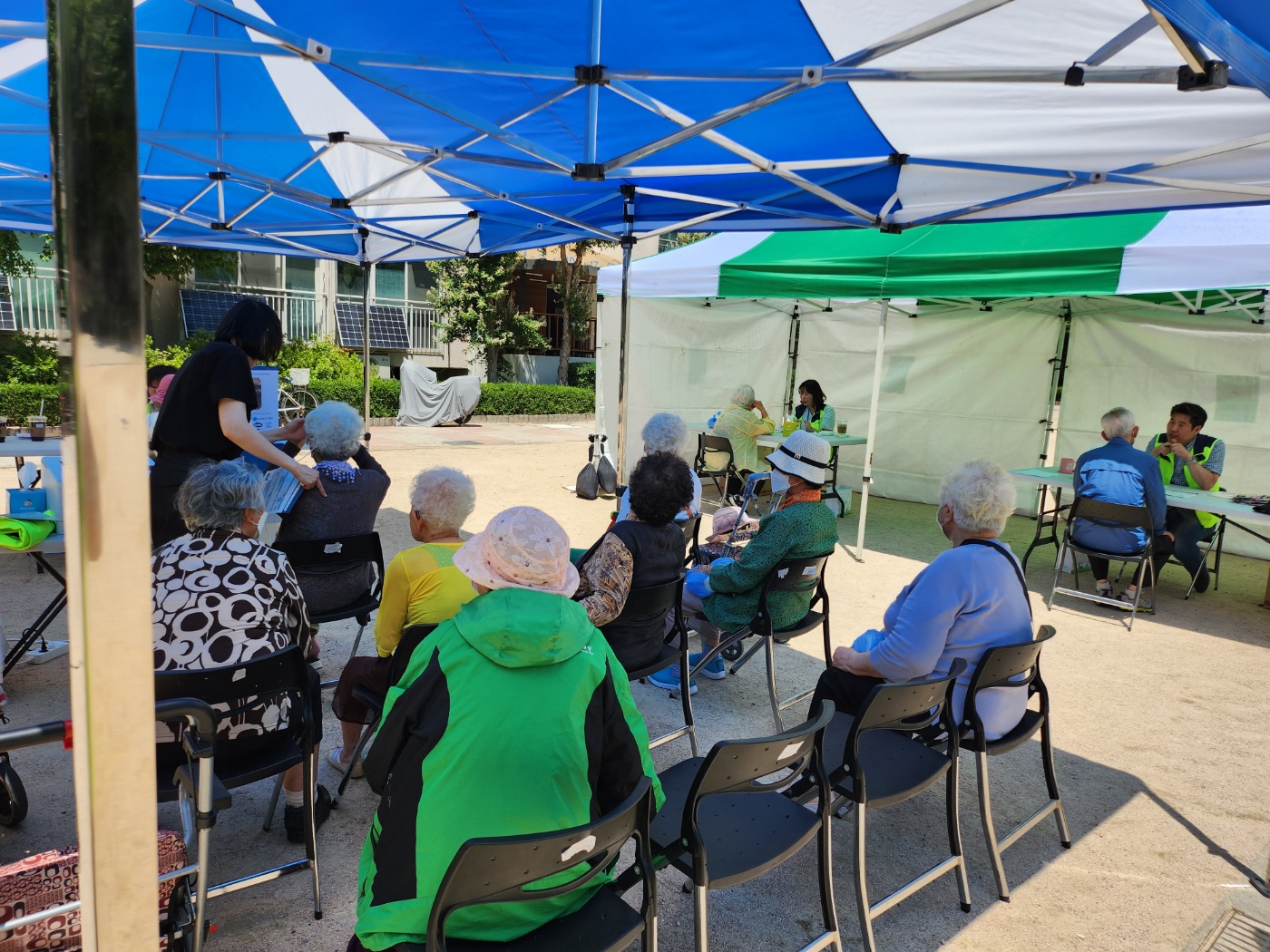 부스 두 곳을 설치하여 일정 거리를 띄워두고 운영하니 기다리시는 동안 햇빛을 피해서