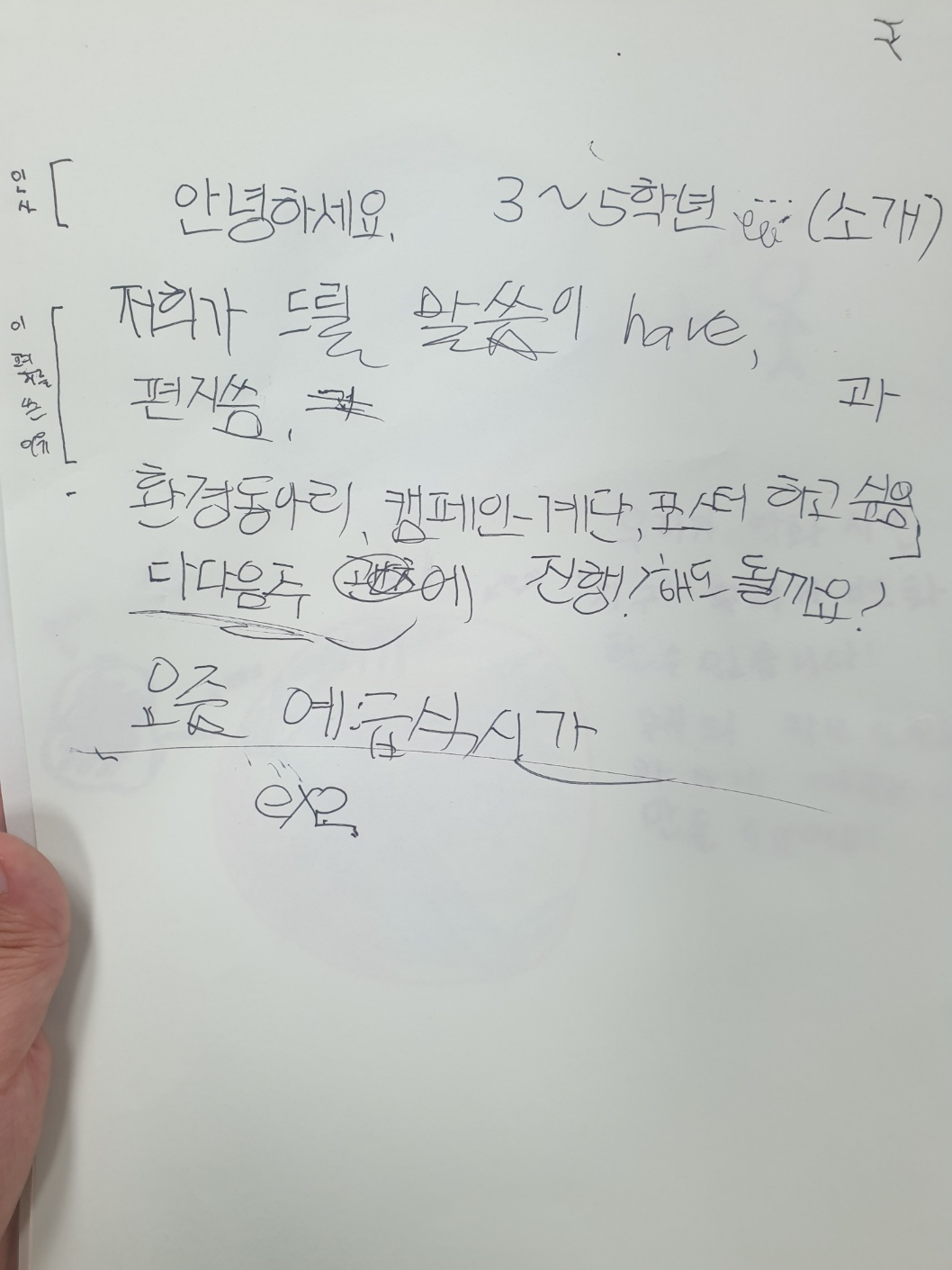 열심히 만든 제안서를 가지고 직접 교감 선생님께 부탁드리러 갔습니다.