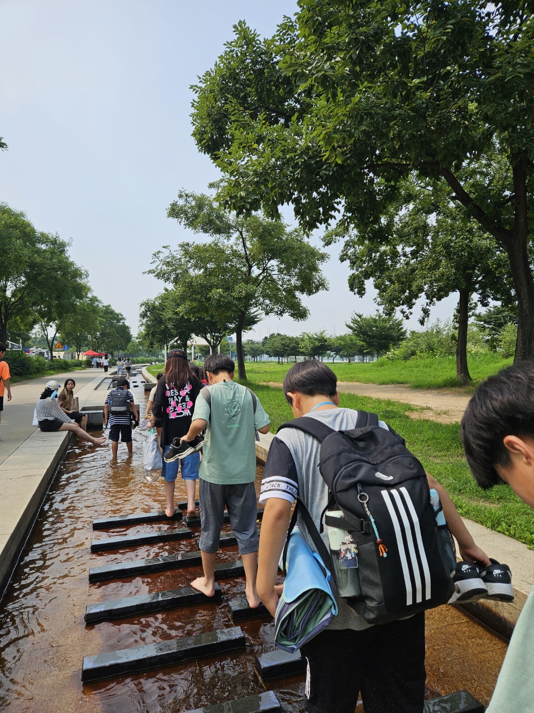 한강에 도착하니, 시원한 물길이 있었습니다.