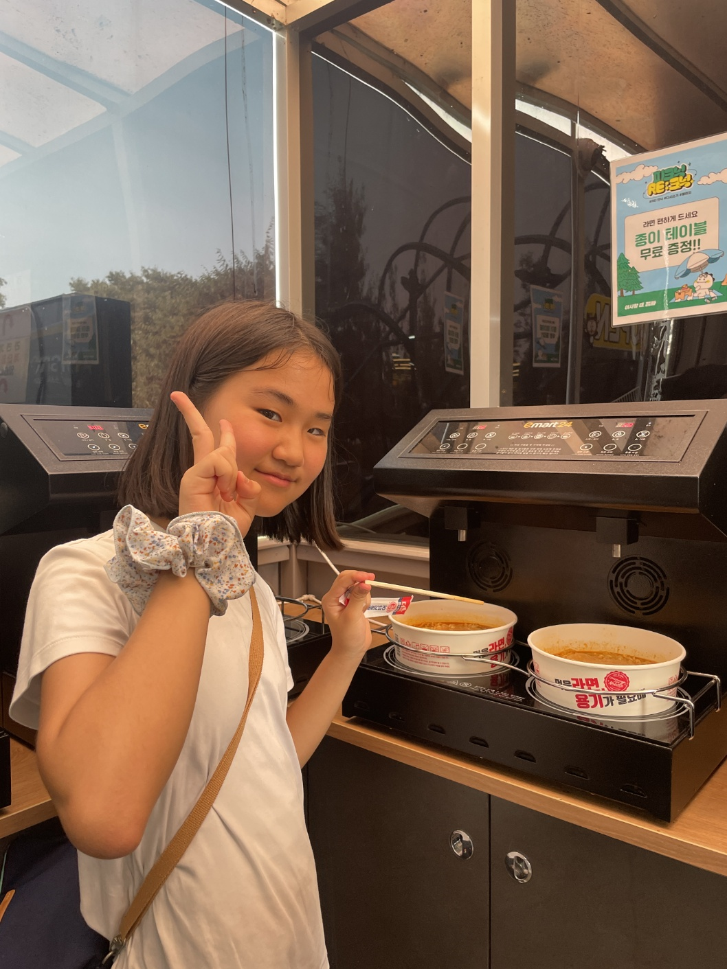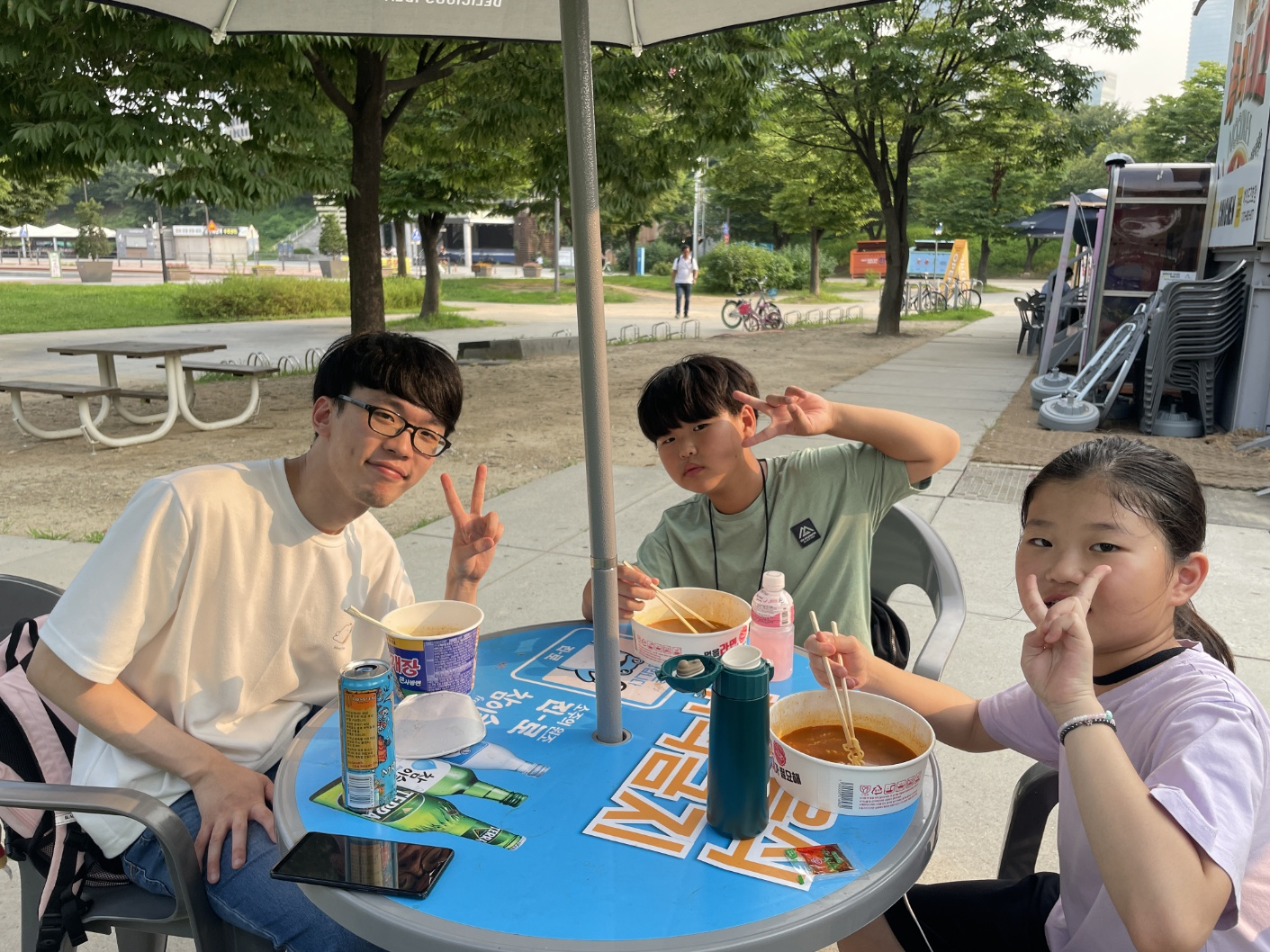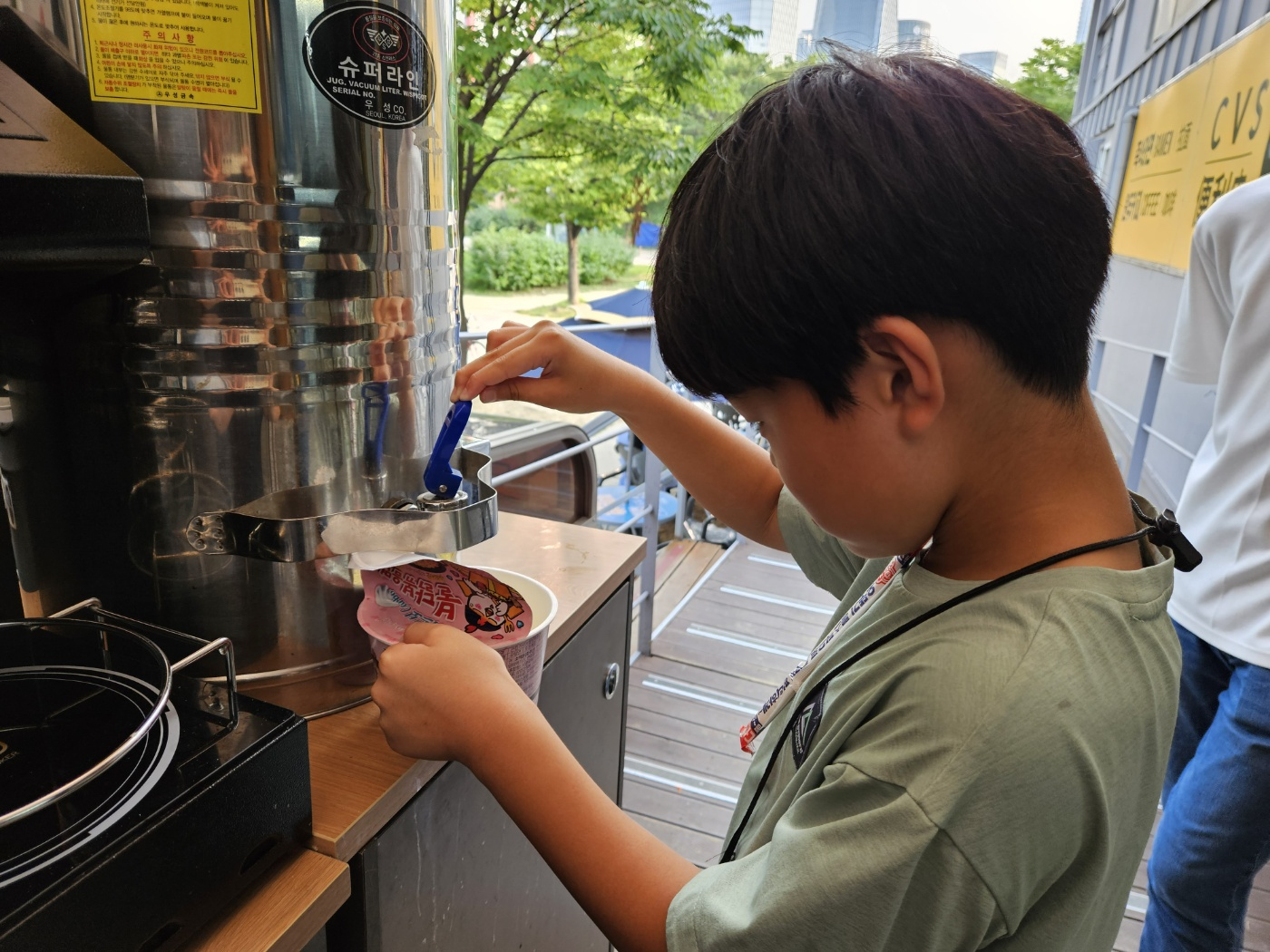 김밥과 함께 먹을 라면을 사러 편의점으로 이동했습니다.