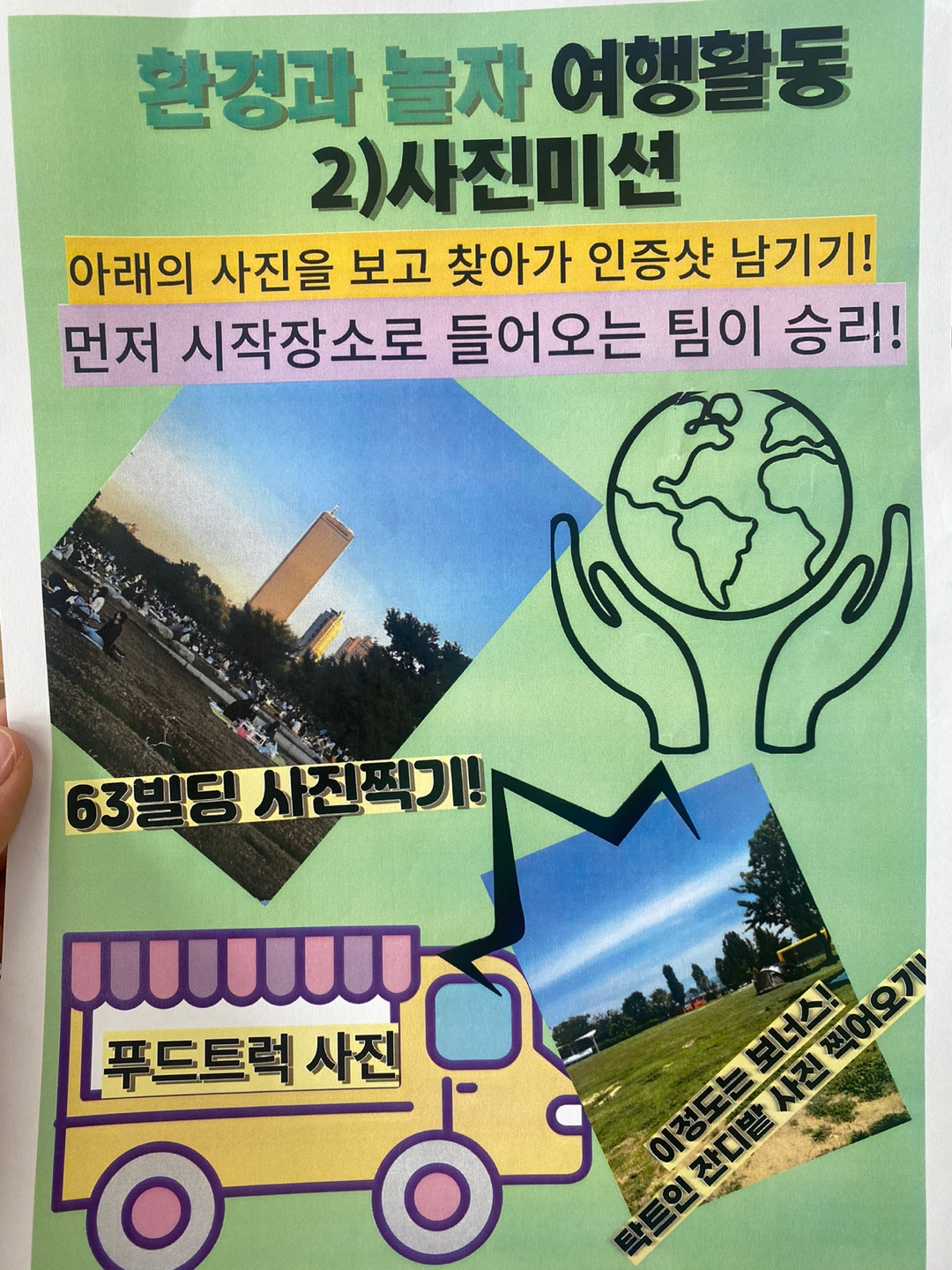 친구들이 한강 이곳저곳을 둘러보며, 팀원들과 친해질 수 있도록 사진미션을 준비했습니다.