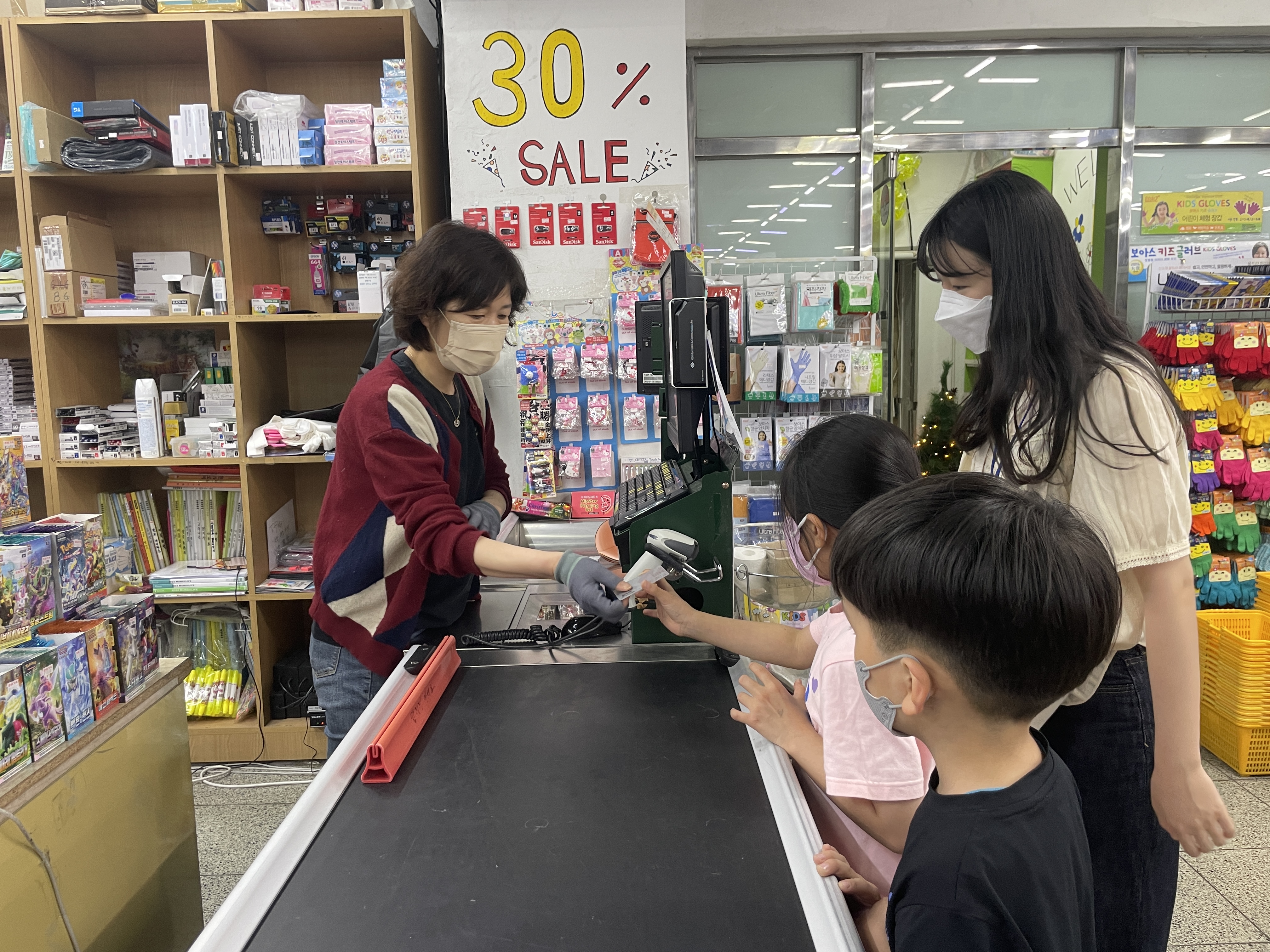 복지관에 있는 재료들은 복지관에서 빌리기로 하고 커다란 전지, 포스트잇, 볼펜을 사기로 했습니다.