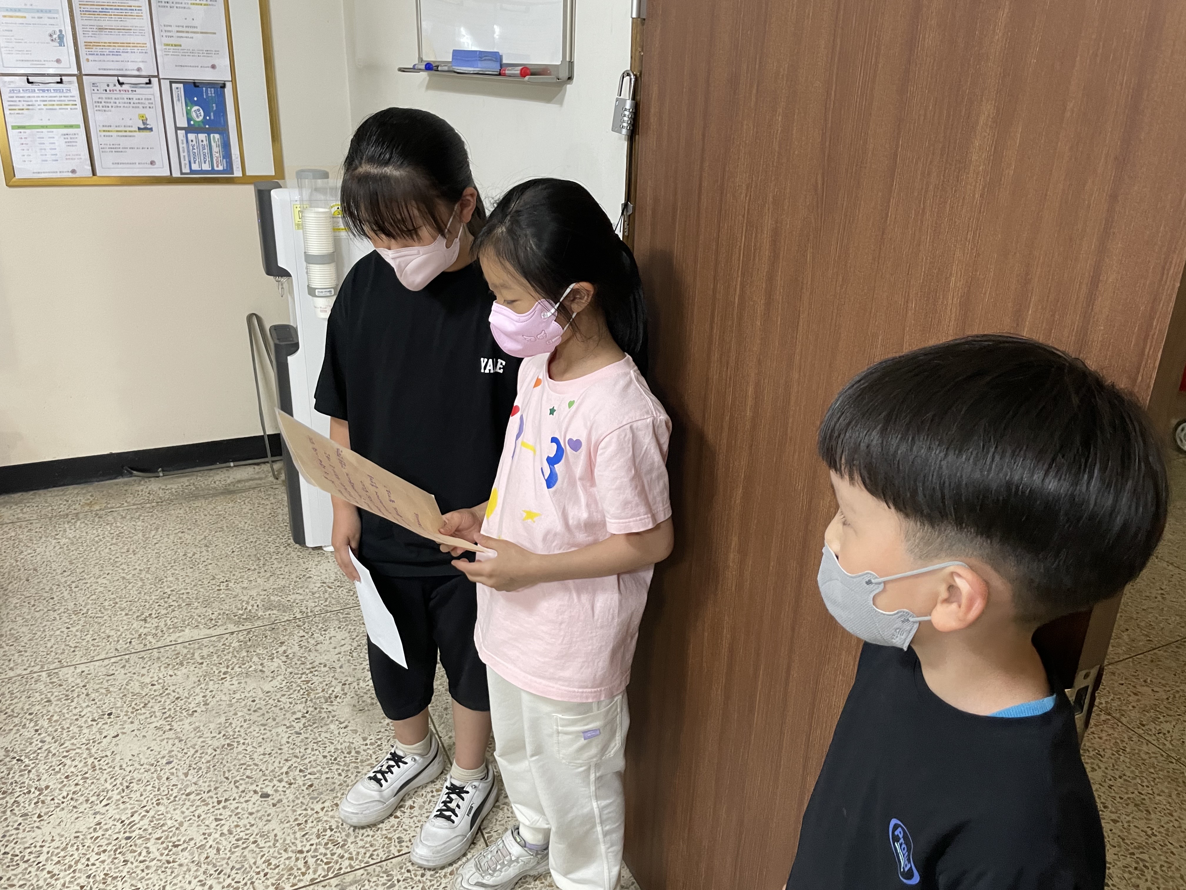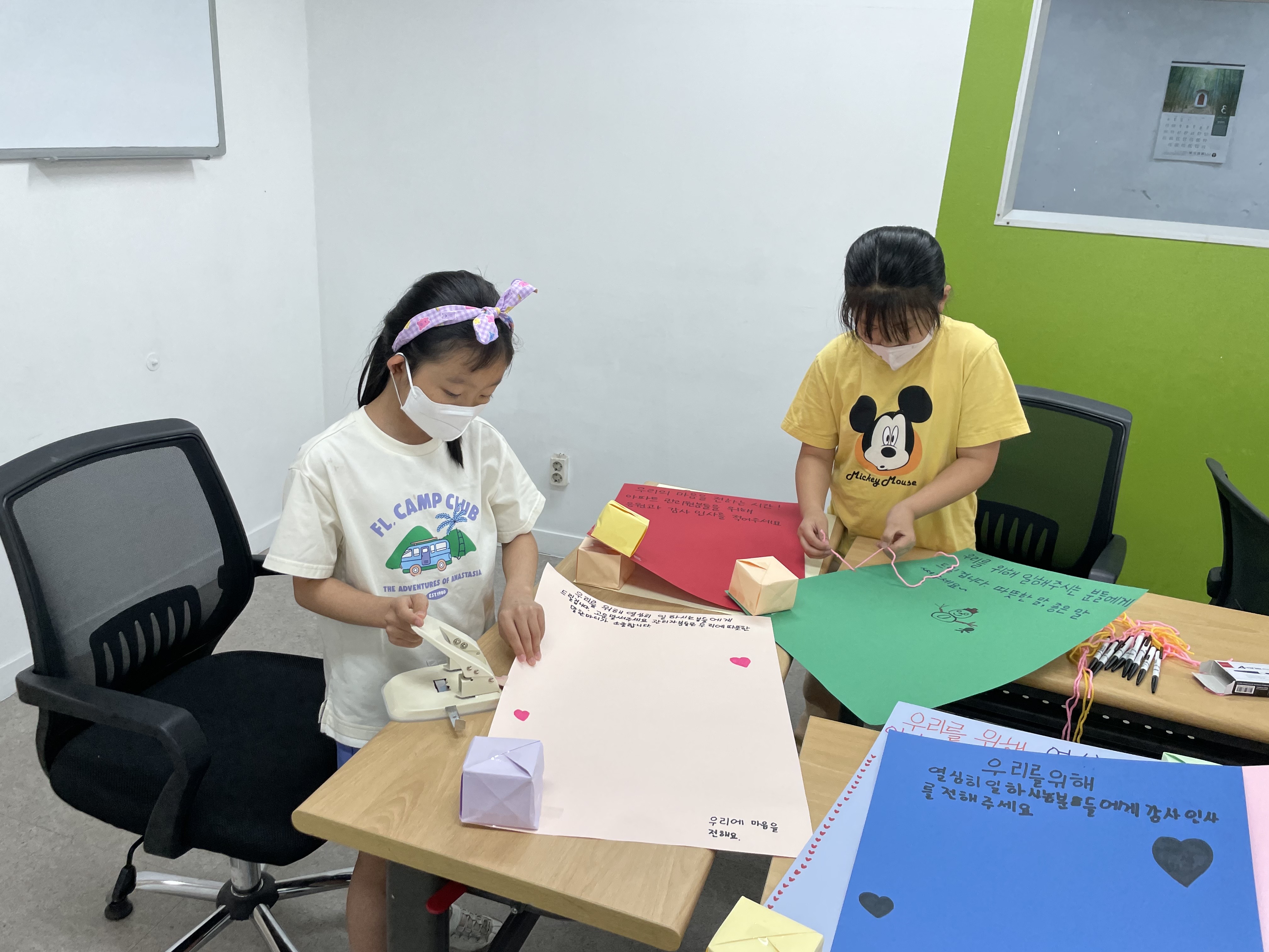 아이들이 바로 떠올리기 어려워해서 제가 먼저 문구를 제안했습니다.