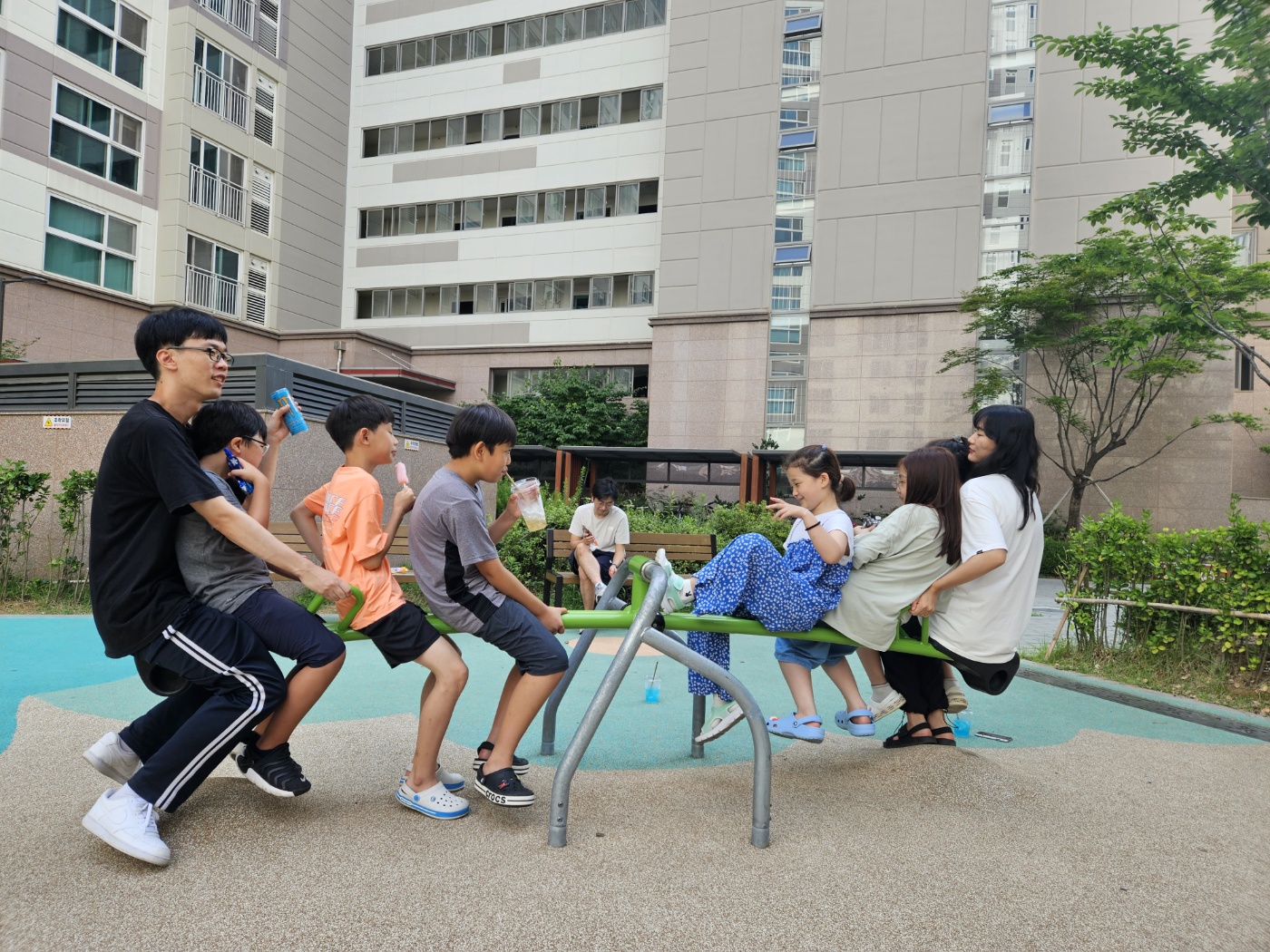 아이들과 이대로 헤어지긴 아쉬워 근처 놀이터에서 아이들과 함께 더 놀기로 했습니다.