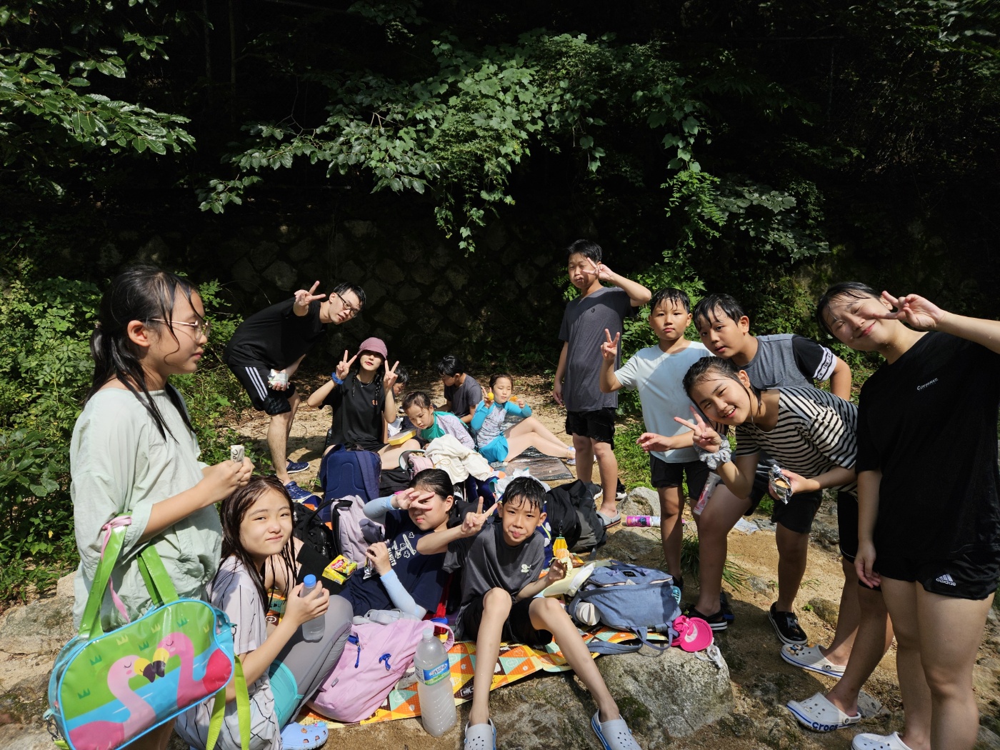 서로서로 물도 뿌리고, 수영도 배워보고, 돌탑도 쌓고, 다슬기를 찾으며 즐겼습니다.