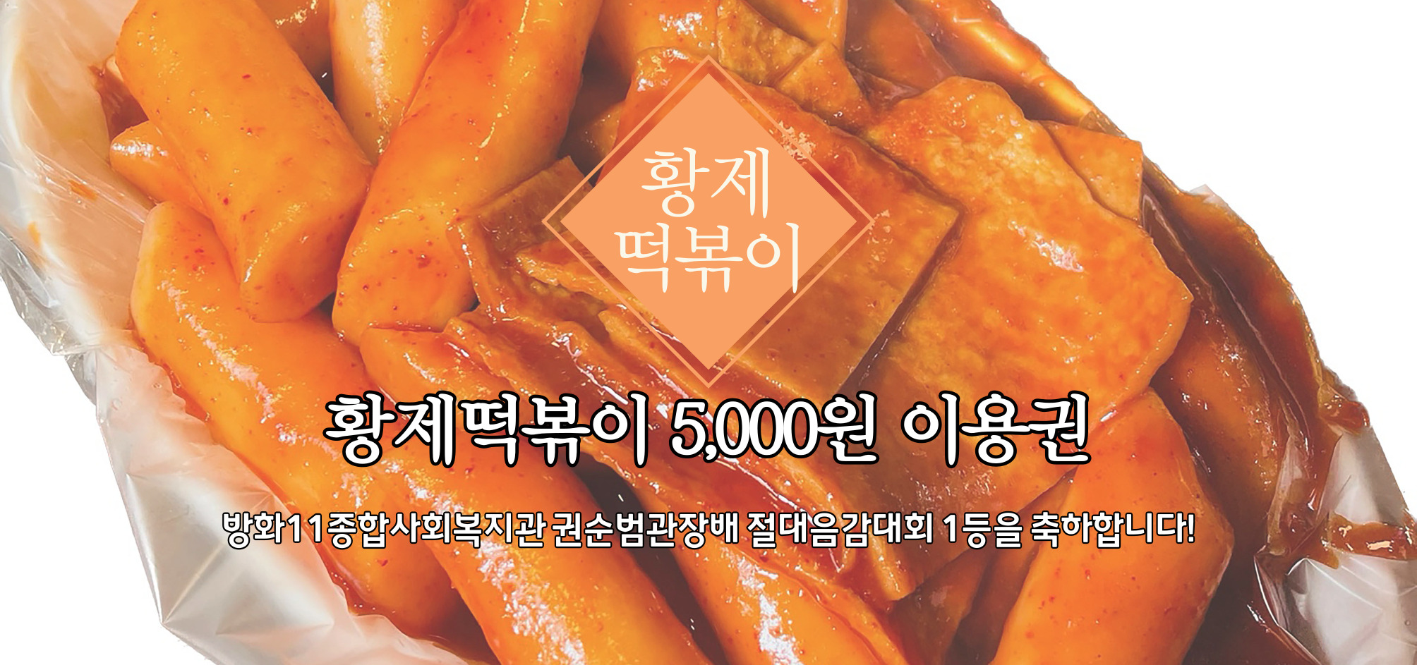 1등을 한 친구에게 황제떡볶이 5,000원 이용권이 주어졌답니다.