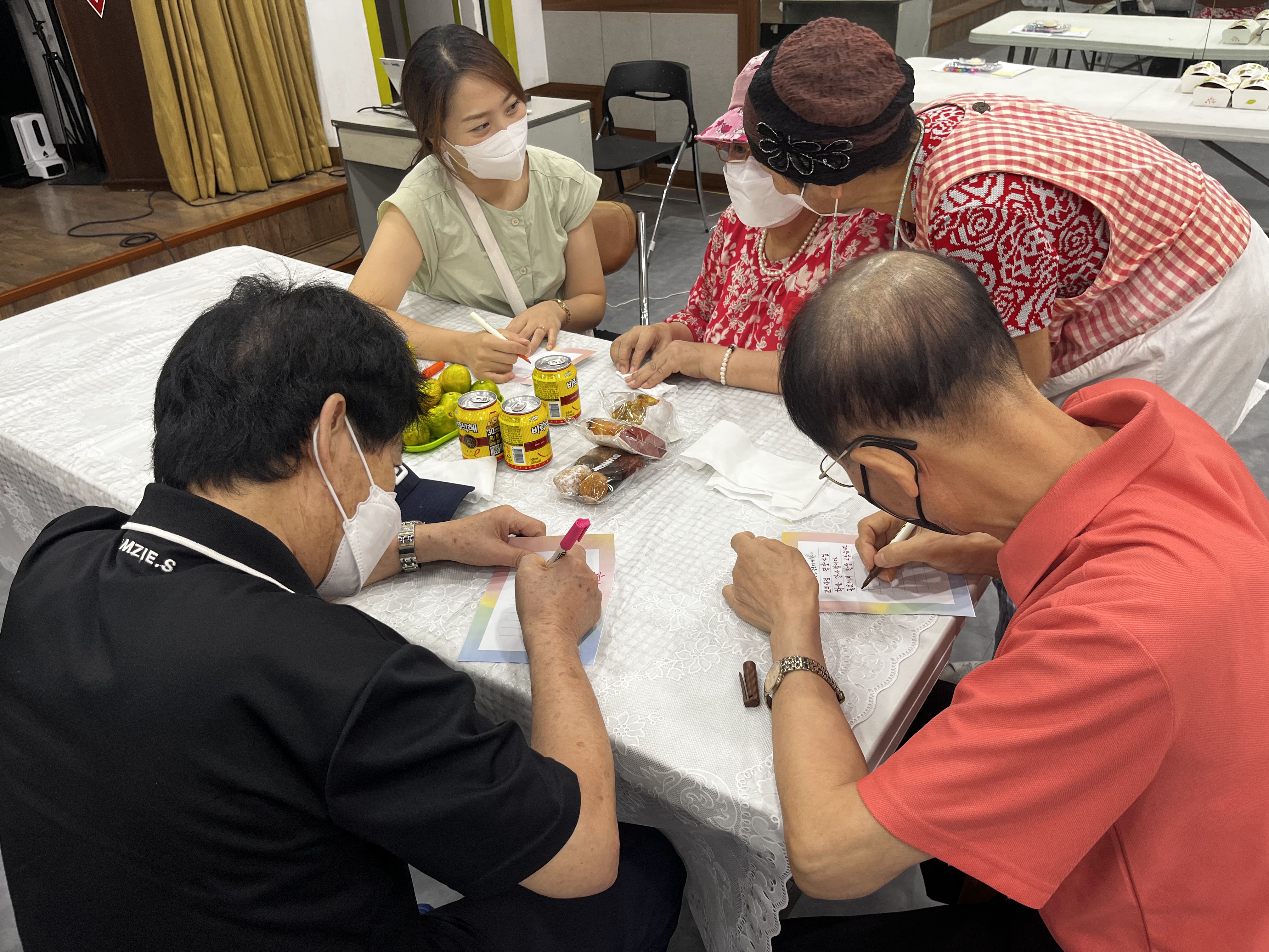 글을 적기 어려워하는 어르신들은 조리사님 영양사님 그리고 곽지혜 선생님이 도움을 드렸습니다.
